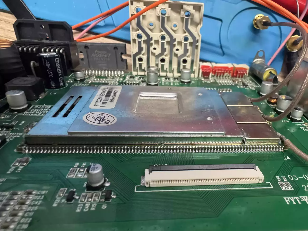 Я бачите, нічого нового в корейському пристрої ми небачимо. Процесорний модуль поверх плати. В цих девайсів є типовуха. Зелена плата від постійних нагрівів і охолоджень деформується, а процесорний модуль маючи масивний радіатор - ні. В результаті пайка тріскається і приїхали.
