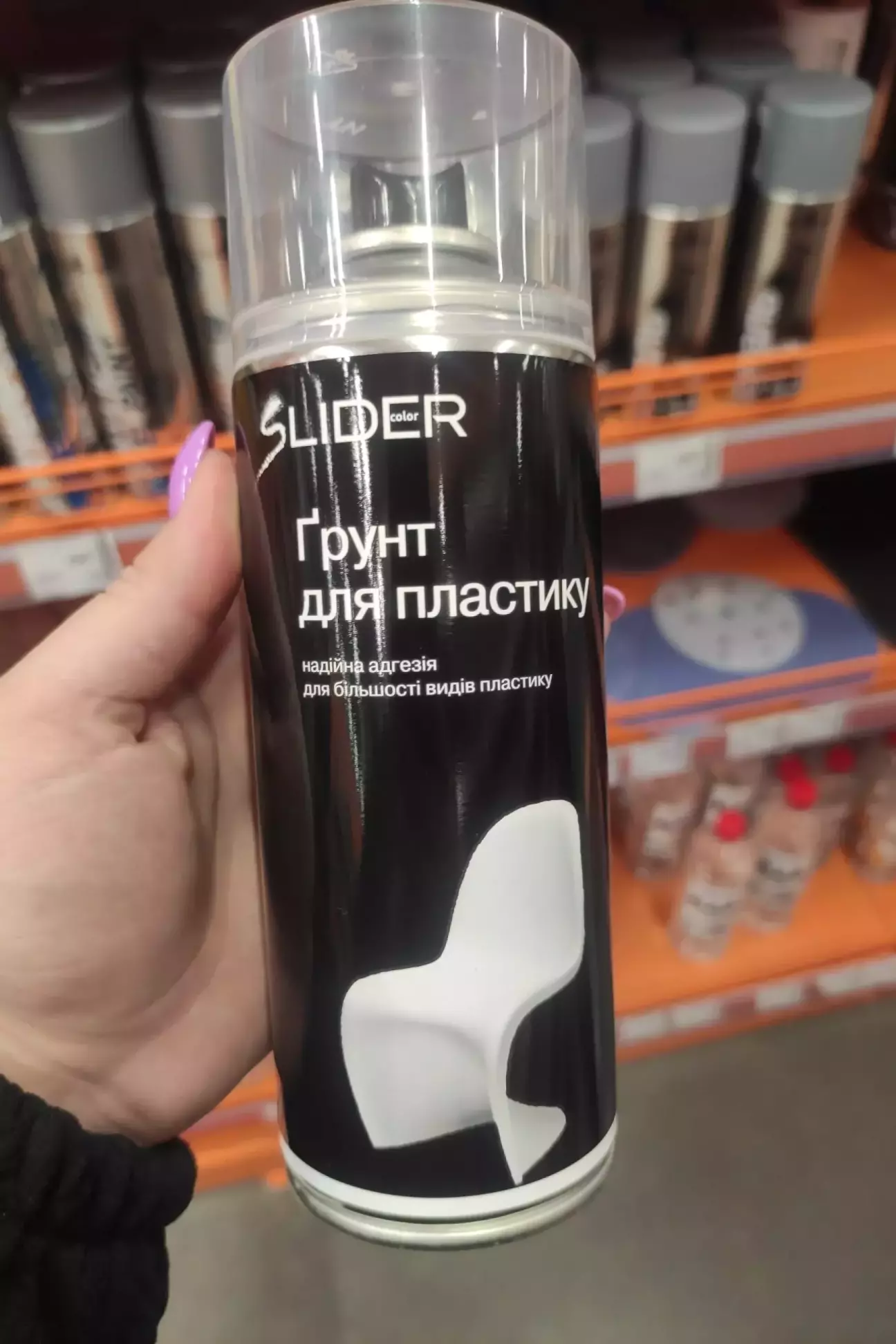 Дальше стал вопрос как поступить с козырьками, ведь они не пластиковые а виниловые, пришлось купить ещё балон краски для винила за 400 грн все в том же эпицентре