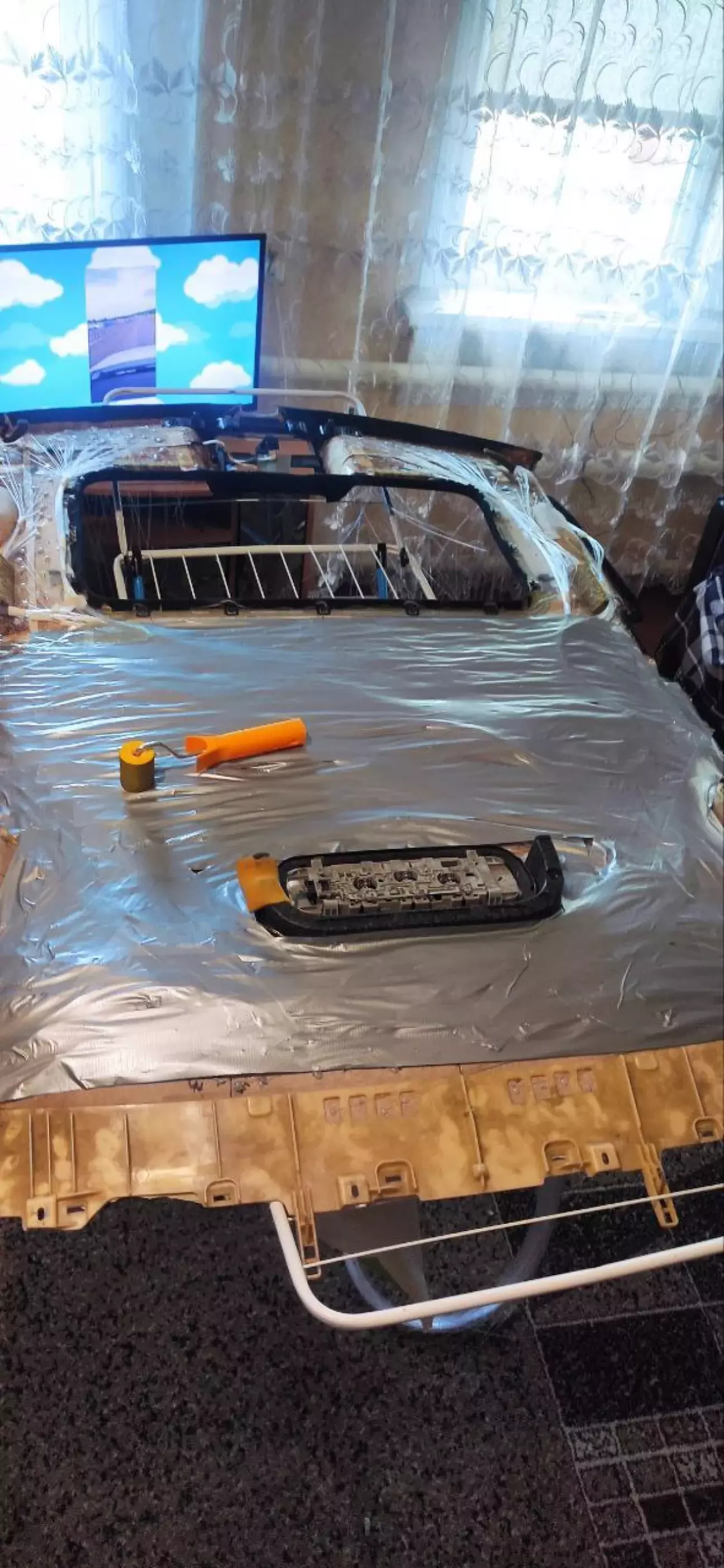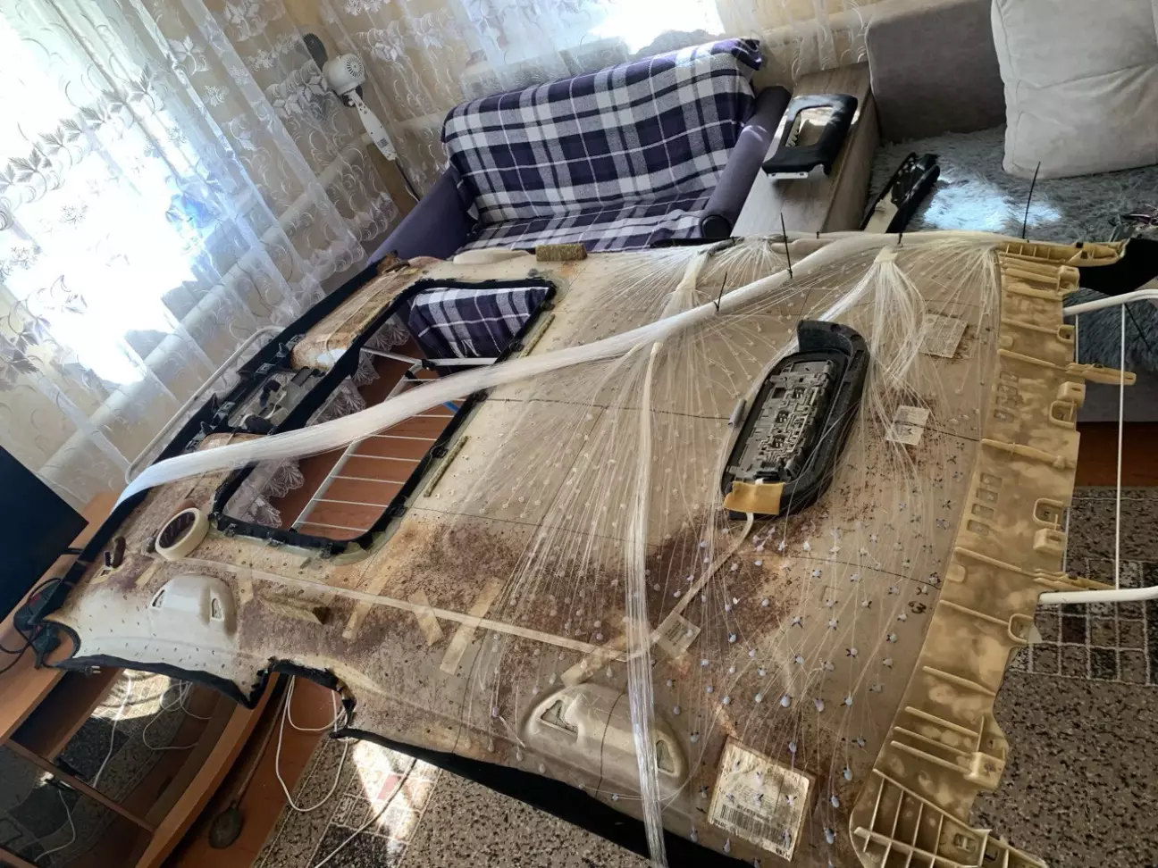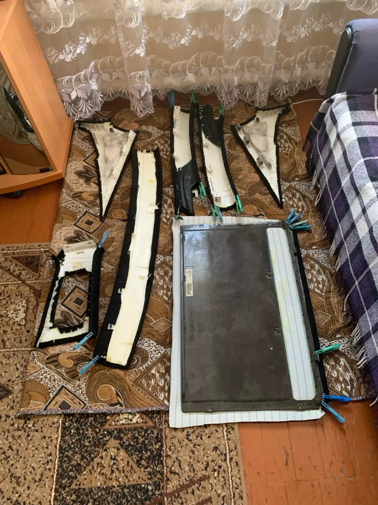 Сама разборка потолка заняла часа 3-4(старался скрупулёзно отнестись ко всем болтикам так как знаю чем может обернуться перепутанные болты и выдавленный потолок при сборке после перетяжки)