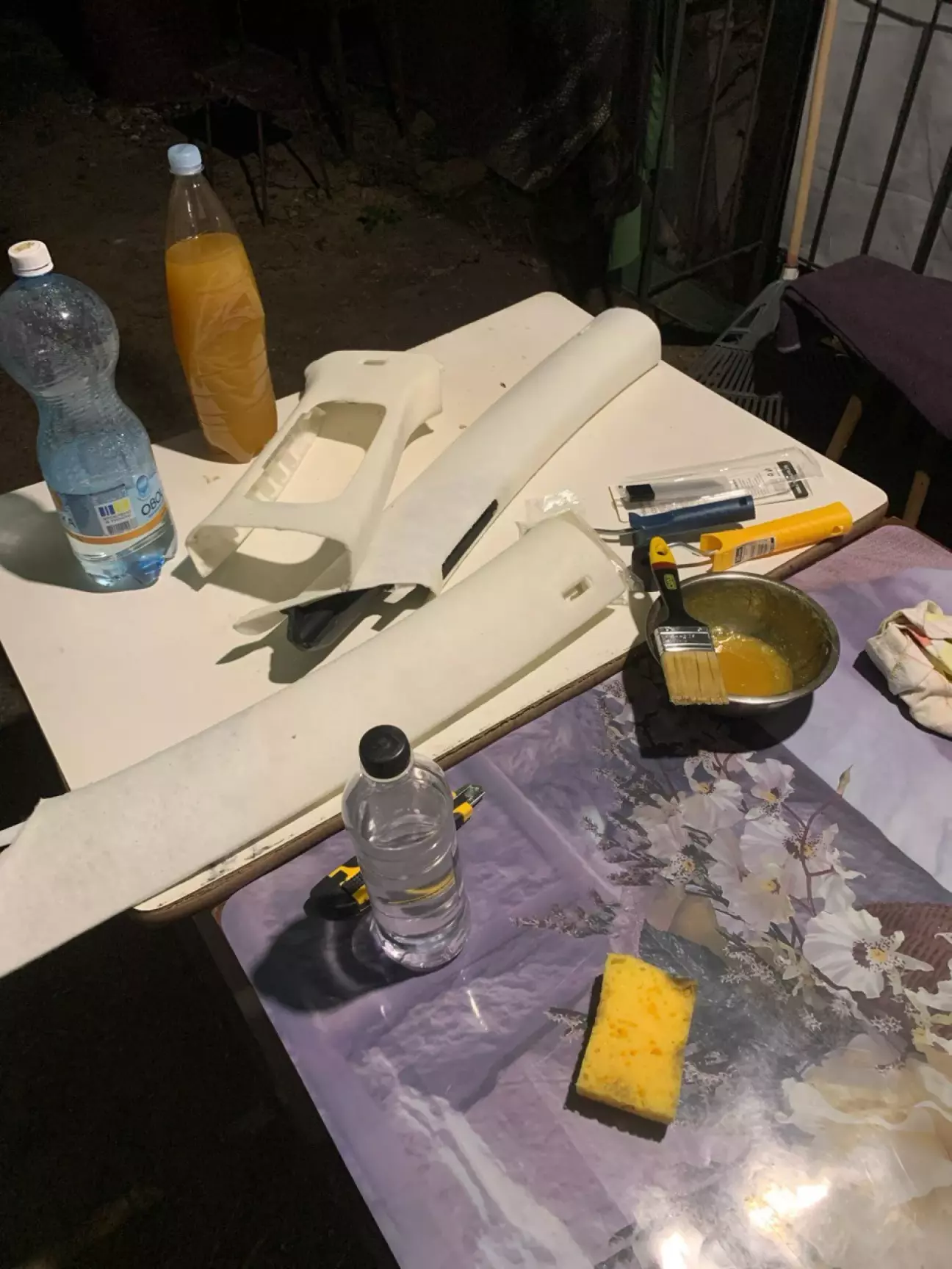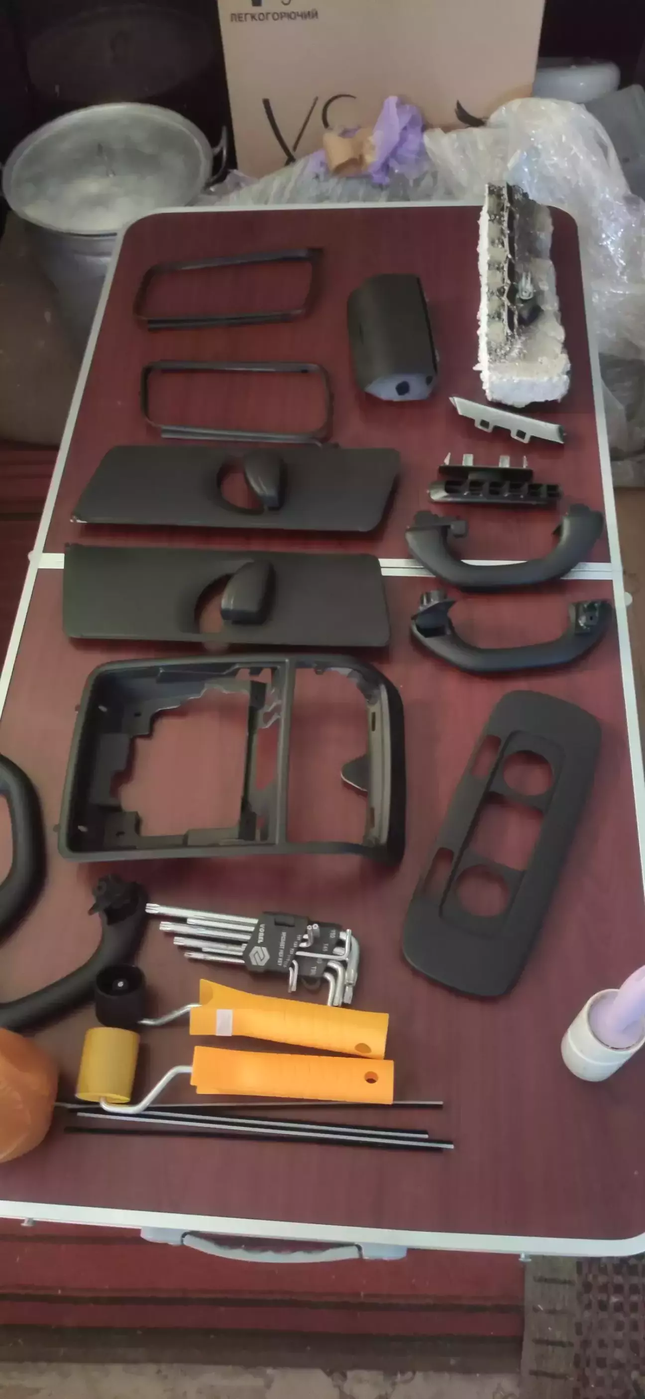 Но на этом процес ведь не заканчивается, ведь пластик салона серый был, нужно красить, решил и это сделать сам, как оказалось у меня жена маляр от бога🤭👍все малярные работы делала она. Купил праймер для пластика и эмаль для пластика черного цвета