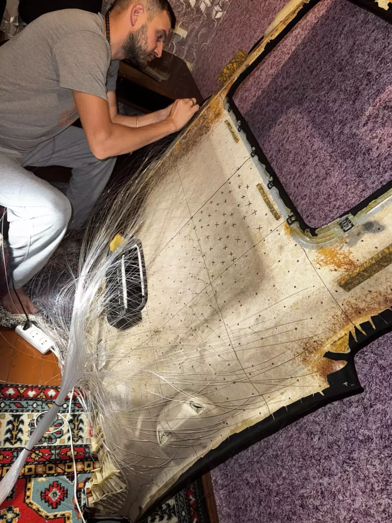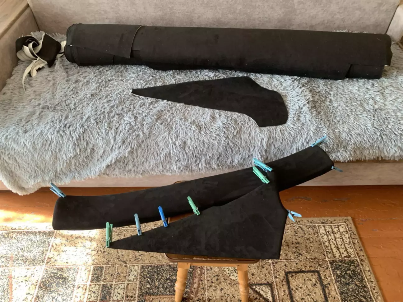 И начался процес сборки, собирал часа 4, потому что толщина ткани для стоек не подходящая, на стойки лучше брать ткань либо без подкладки ли о самоклеющуюся, потому что пластик ремней и дефлекторы стоек нормально не ставятся пока не подрезать его🤏