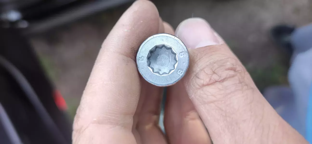 Это такой же только с водительской стороны. Ни плоскогубцами ни отвёрткой ни головку даже набить не получалось, вопрос решился молотком и зубилом)
