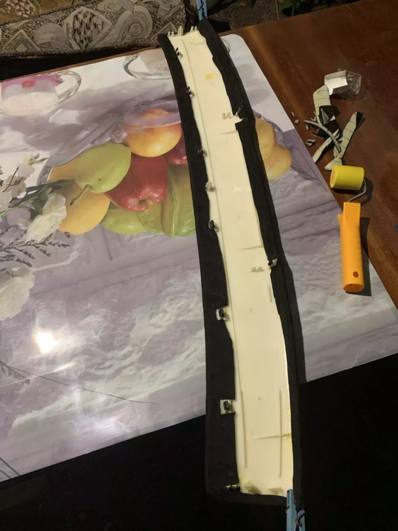 Клеил целый день, ведь нужно ждать пока клей начнет проявлять адгезию спустя 5-10 минут, плюс пока обезжирить и дать высохнуть, ведь со стоек ткань слезла а вот подкладка ос плачь и на ней не так быстро высыхал обезжиривать, клеил по верху старой подкладки потому что сдереть ее нереально, плюс она была даже к лучшему ведь клей ещё лучше брался. Купил специальные прикатывающие валики паралоновый и пластиковый в эпицентре цена 200 грн за пару.