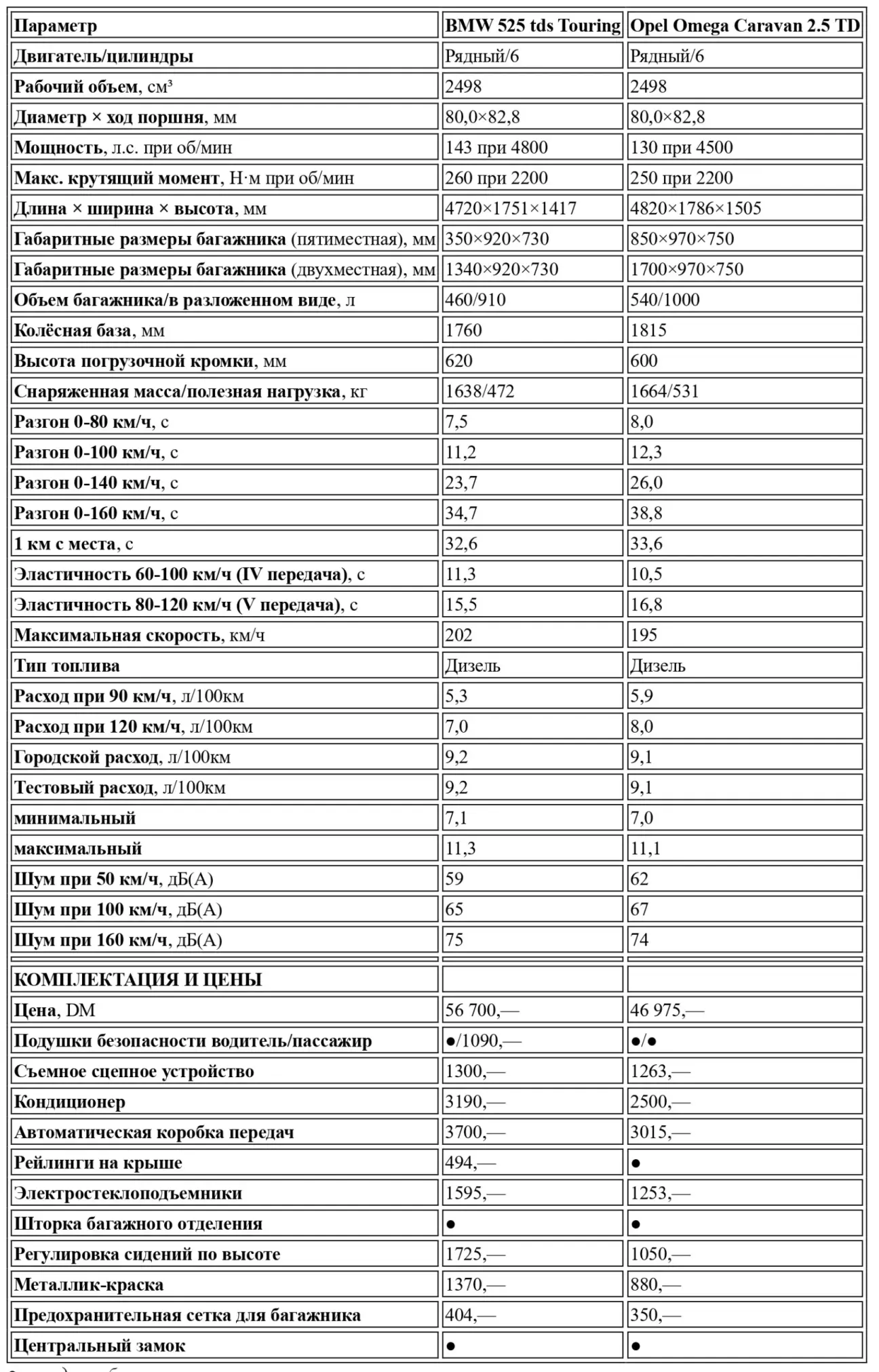 Перевод теста-сравнения BMW E34 525 tds Touring vs Opel Omega B 2.5 TD Caravan от немецкого автомобильного журнального издания Auto Motor und Sport, № 10, 1994.