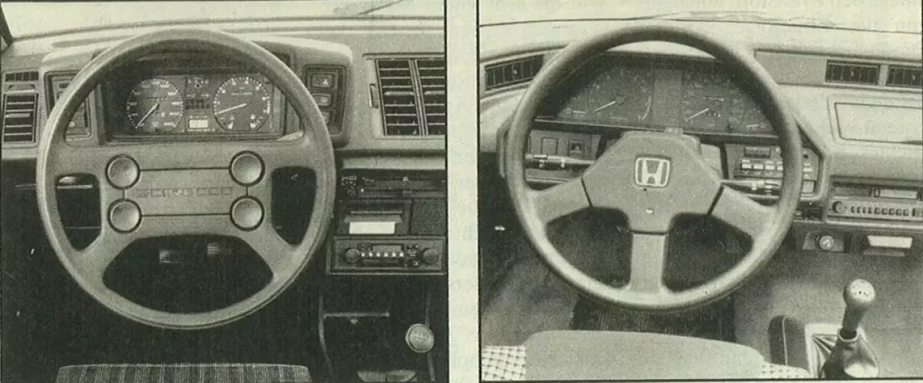 Таким образом, Scirocco — это классический 2+2, чего нельзя сказать о Хонде. Хотя она якобы четырёхместная, задний «тазик» неприемлем даже для маленького ребёнка. Спереди же, конечно, в CRX чувствуешь себя хорошо в спортивных сиденьях и наслаждаешься хорошим ощущением пространства. Этот образ дополняется чётко расположенными аналоговыми приборами.