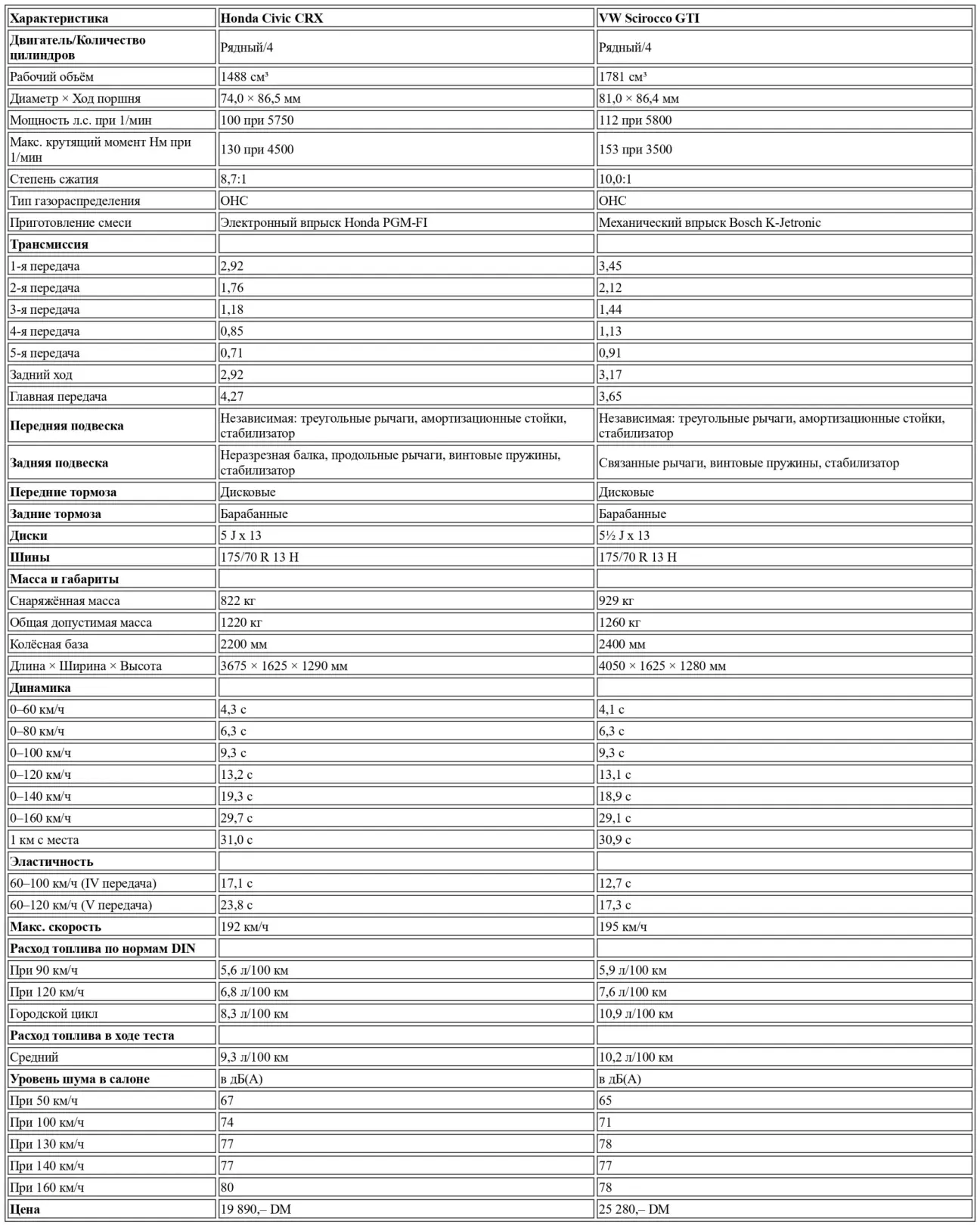 Перевод теста-сравнения Honda Civic CRX vs VW Scirocco GTI от немецкого автомобильного журнального издания Auto Motor und Sport, № 13, 1984.