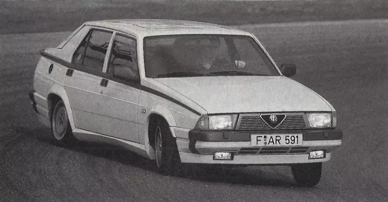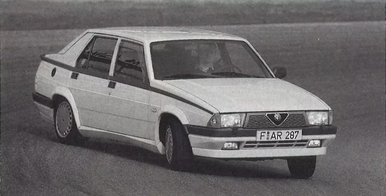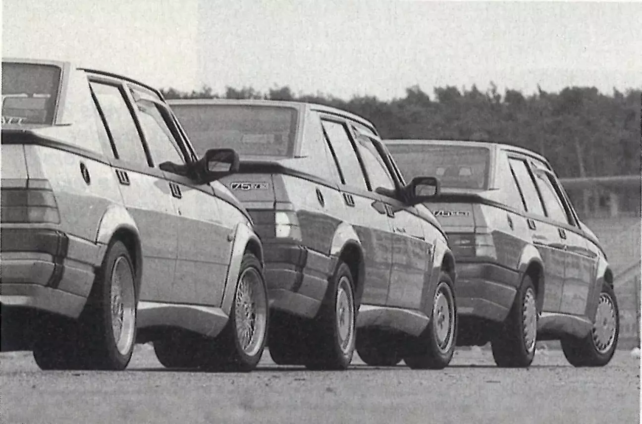 Какие качества можно ожидать от спортивного седана с таким набором символов в 1988 году? Журнал Sport Auto протестировал три версии модели 75. Три года назад, по случаю 75-летнего юбилея компании, Альфа представила логично названную серию седанов Alfa 75, чей недавно разработанный двухлитровый четырёхцилиндровый двигатель с двумя свечами зажигания на камеру сгорания, двумя верхними распредвалами и хитрой регулировкой фаз газораспределения напоминает о прогрессивной традиции прирученных спортивных моторов.