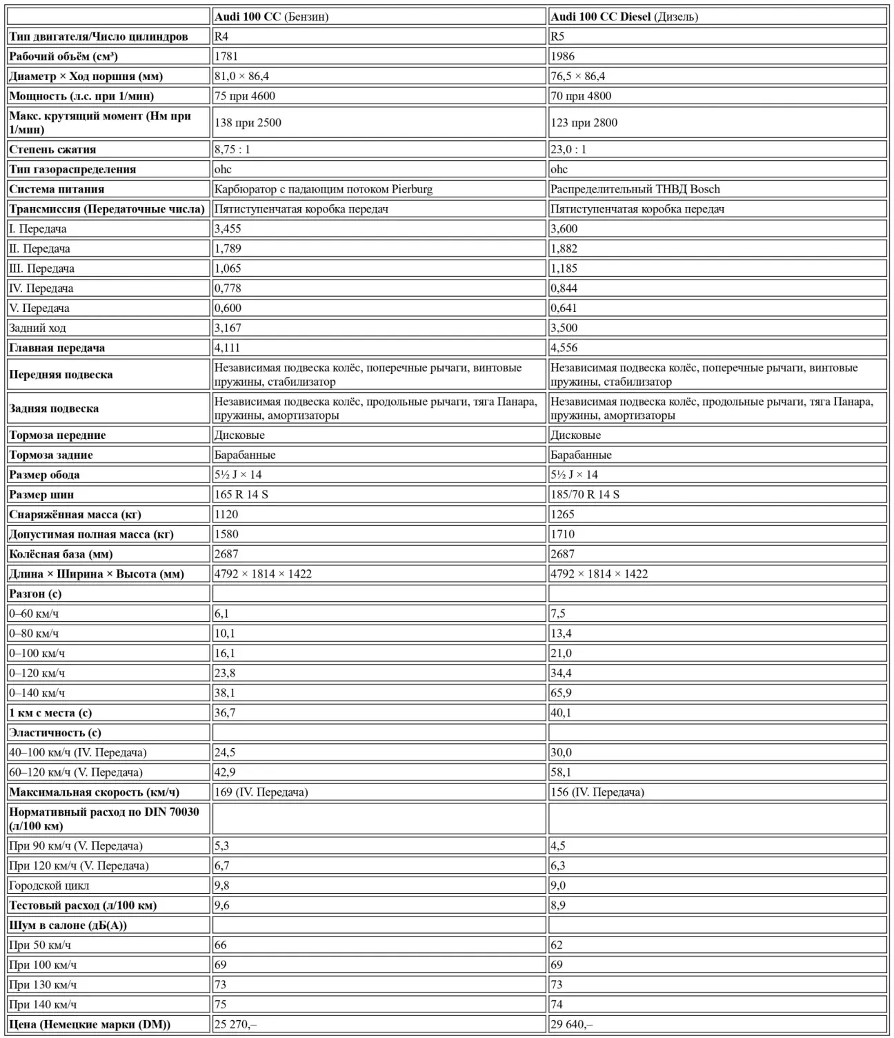 Перевод теста-сравнения Audi 100 CC vs Audi 100 CC Diesel от немецкого автомобильного журнального издания Auto Motor und Sport, № 14, 1984.