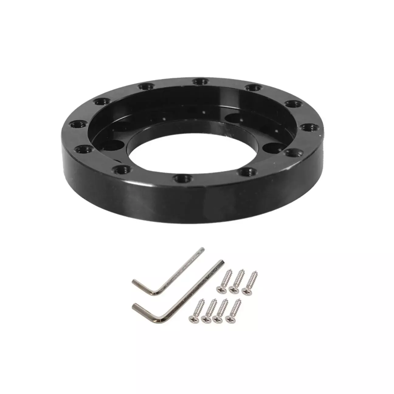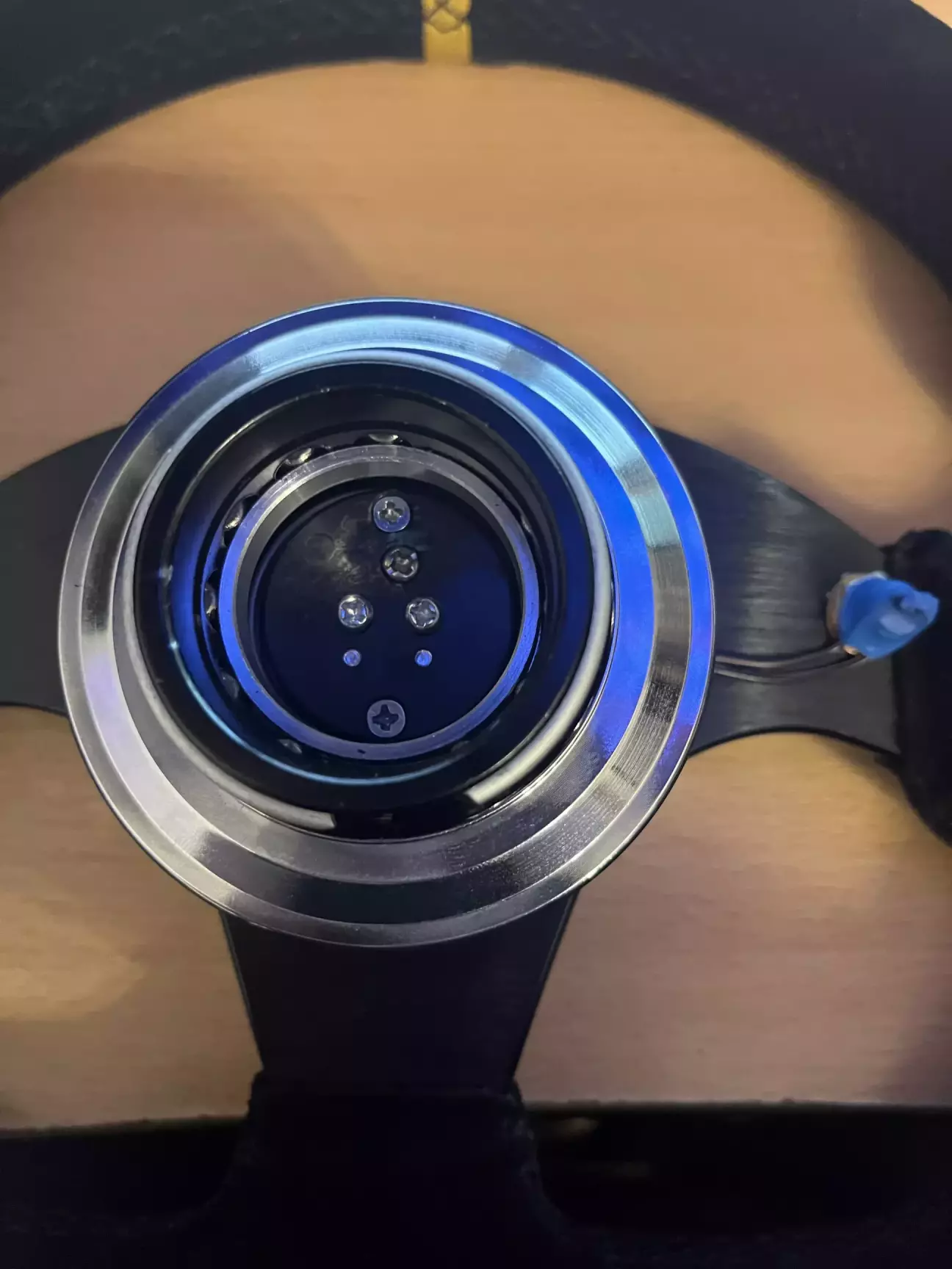 Далі прикручуємо нові "пелюстки", беремо перехідне кільце, виміряємо центр та прикручуємо і його на законне місце. Потім йде швидковідʼємний адаптер та кермо. Все просто та логічно.