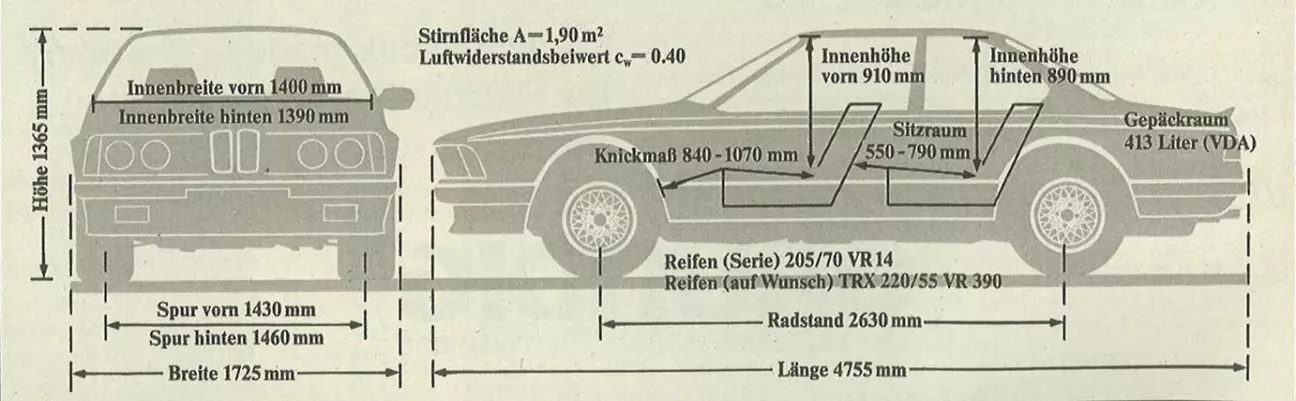 Дополнительное оснащение: Шины и диски стандарта TRX (1 333 DM), Пятиступенчатая спортивная коробка передач (1 200 DM), Самоблокирующийся дифференциал (25%) (750 DM), Регулировка дорожного просвета задней оси (1 158 DM), Противоугонная сигнализация (541 DM), Наружное зеркало со стороны пассажира с электрорегулировкой и обогревом (229 DM), Сдвижной люк с электроприводом (1 820 DM), Сдвижной люк с механическим приводом (1 451 DM), Кожаная обивка (1 480 DM), Кондиционер (3 238 DM), Автоматический климат-контроль (3 983 DM), Автоматический круиз-контроль (512 DM).