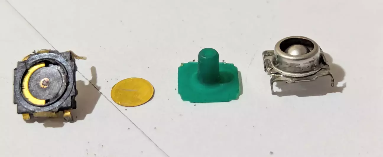 1.Тактовий мікроперемикач у кнопці ручки дверей.