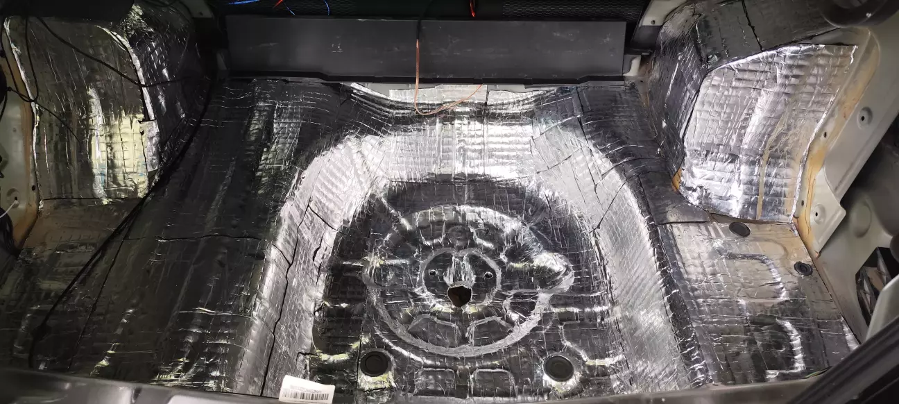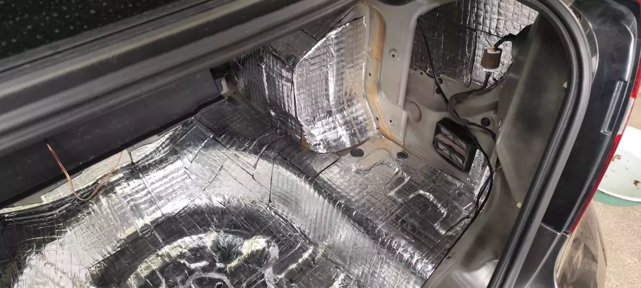 Віброізоляція багажника і криші і перетяжка потолка і стійок в алькантару