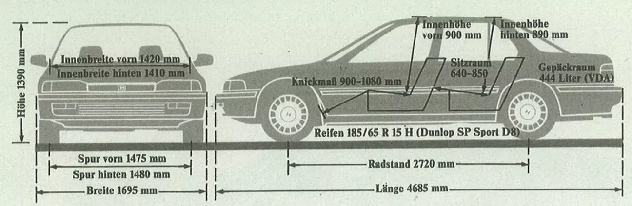 Страхование гражданской ответственности: DM 1432,− (годовая премия, региональный класс RS 2, 100 процентов). Частичное страхование: DM 205,− (тип-класс 21, региональный класс R 1, без франшизы). Полное страхование: DM 2010,− (тип-класс 24, региональный класс R 2, с франшизой 650 марок, 100 процентов премии).