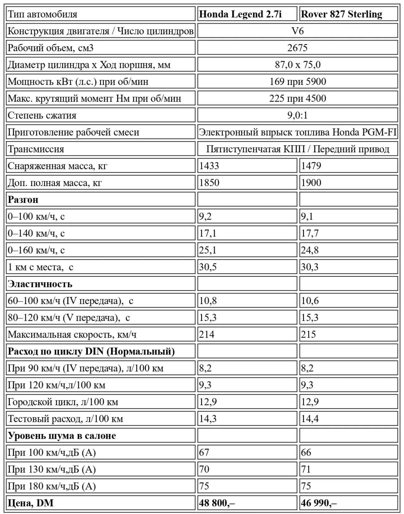 Перевод теста-сравнения Honda Legend 2.7i vs Rover 827 Sterling от немецкого автомобильного журнального издания Auto Motor und Sport, № 17, 1988.