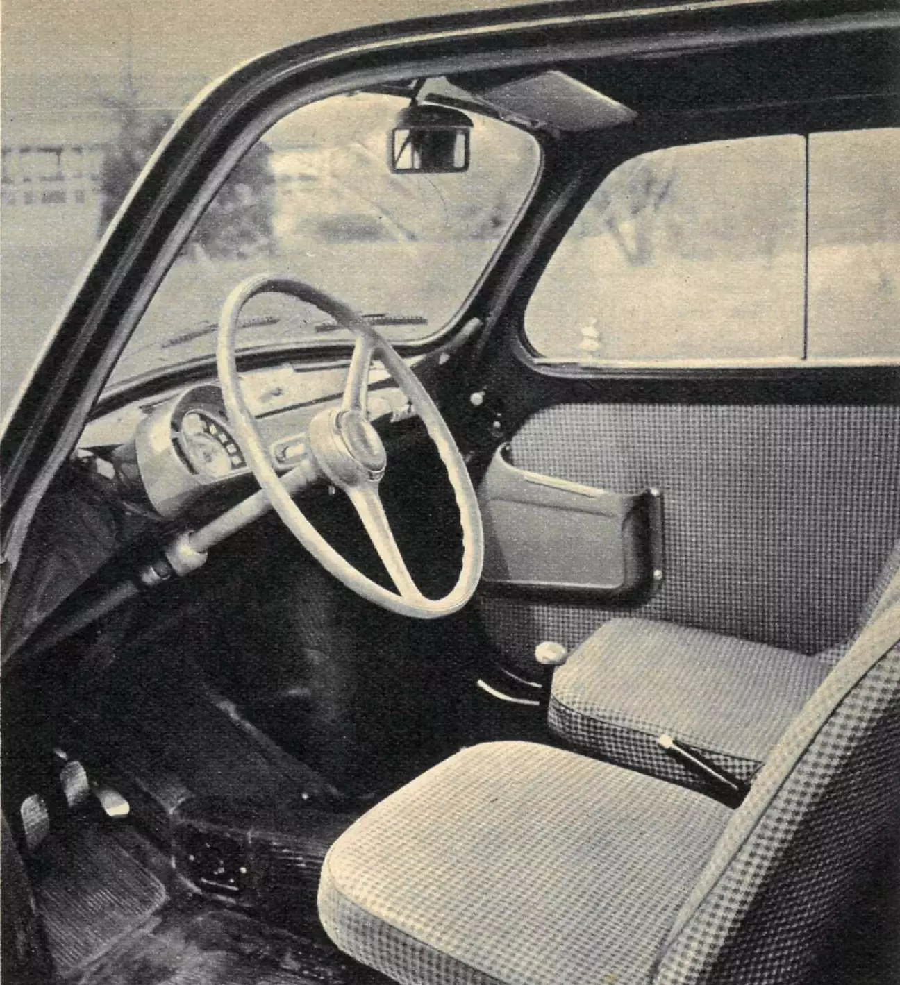 Водитель Fiat 600 обильно занят правой рукой. Ею он должен не только переключать передачи, управлять указателями поворота, стеклоочистителями и ручным тормозом, который расположен между сиденьями, и дотягиваться до рычага отопителя, установленного на центральном тоннеле перед задними сиденьями. Ему нужно делать правой рукой еще больше. Между рычагом переключения передач и ручным тормозом посередине расположены два тяговых рычажка рядом друг с другом, один для стартера, другой для воздушной заслонки (подсоса). Пока двигатель холодный, приходится постоянно «играть» последним, потому что, как и его более крупные собратья, 600-й имеет типичную особенность Fiat: он хорошо заводится, но требует довольно много времени, чтобы выйти на рабочую температуру.
