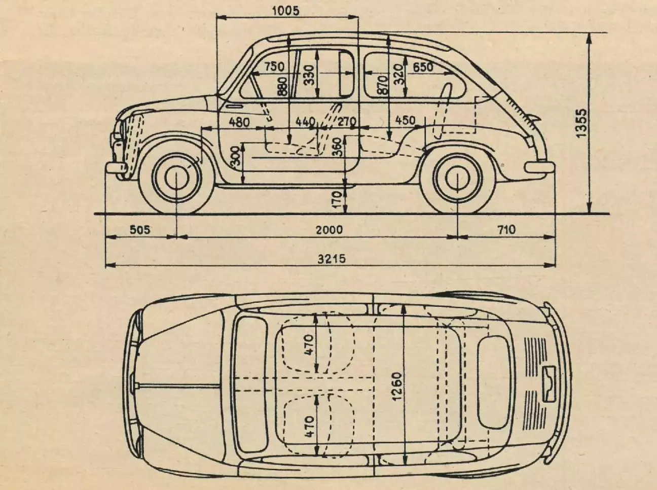 До сих пор никогда не существовало полноценного четырехместного автомобиля с такими малыми внешними размерами, а также с поразительной по отношению к ним просторностью, как Fiat 600. Его длина составляет всего 3215 мм (VW 4070 мм, Renault 3630 мм, Lloyd 3450 мм), и даже всегда двухместный 500 C при той же колесной базе (2000 мм) имел общую длину 3345 мм. К этому добавляется невероятная маневренность (радиус поворота 8,7 метра в сочетании с очень острым рулевым управлением) и, наконец, мощность двигателя, которая в конечном счете является решающим фактором, благодаря которому не возникает соблазна отнести Fiat 600 в категорию микролитражных автомобилей.