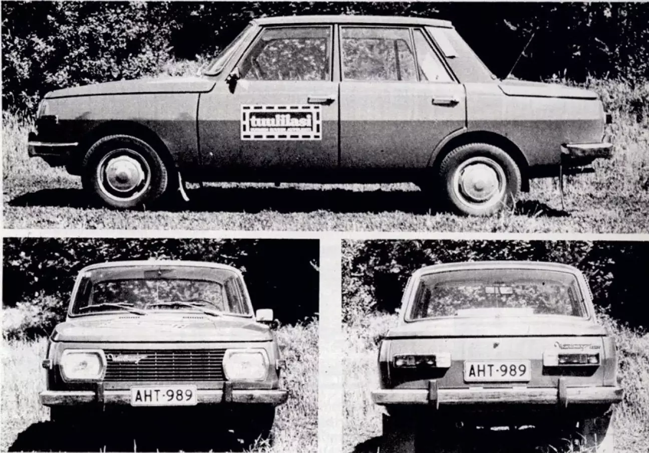 РАСХОД ТОПЛИВА: Средний расход в ходе сравнительного тест-драйва составил 10,4 л/100 км. Сравнительный расход на том же маршруте с Москвичом 10,1 л/100 км. Импортер: Vara-Haka Oy, Вантаа. Страна-изготовитель: ГДР. Цена: 13 700 марок, из которых 40% наличными и остальное в течение 18 месяцев.