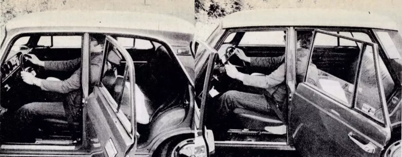 Тому, кто впервые садится в Wartburg, полезно провести лекцию на тему «Как выбраться из машины самостоятельно». Дело в том, что система замков Варри отличается от всех, с которыми мы сталкивались. Недостаточно того, что штифты блокировки работают противоположно обычным, их еще нужно слегка повернуть. Ручки открывания дверей также требуют движения в двух направлениях. Подобные меры, конечно, затрудняют попытки взлома, но... Ручки Мосса — знакомого типа «вверх-открыто-вниз-закрыто». В правой передней двери Москвича нет замка под ключ. Wartburg имеет детские замки в задних дверях.