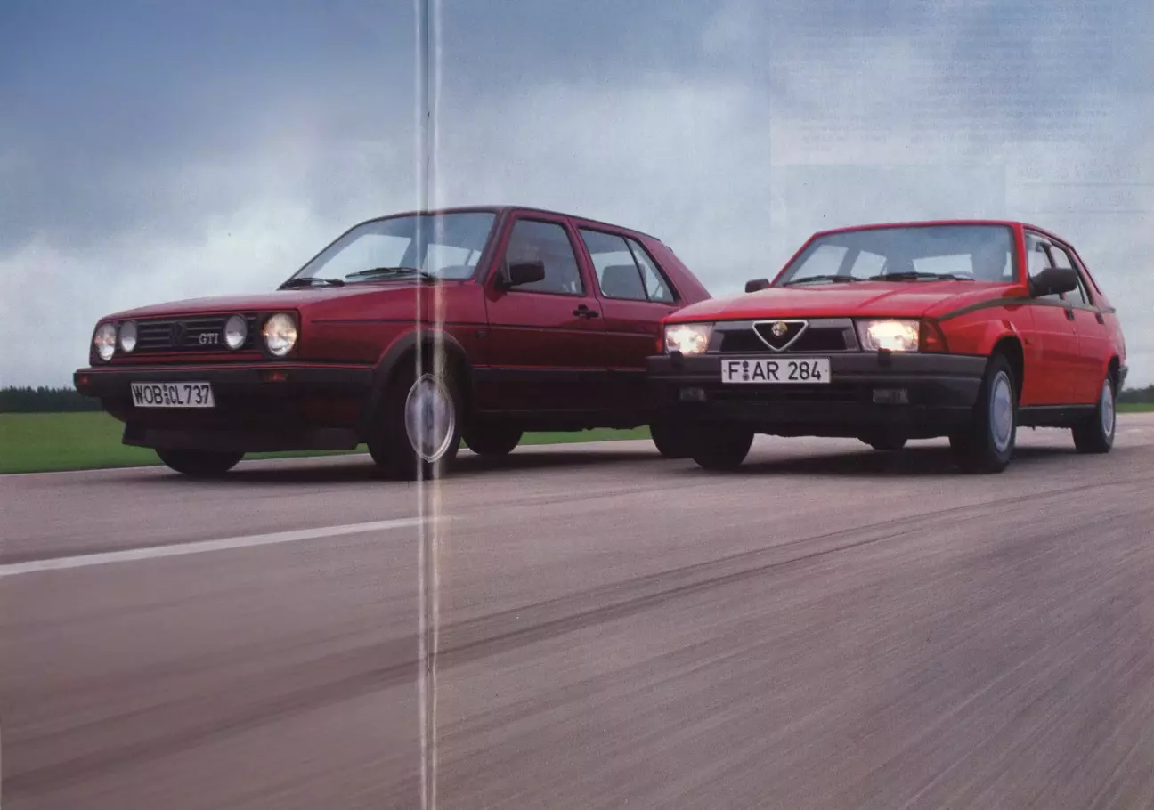 Перевод теста-сравнения Alfa Romeo 75 vs VW Golf 2 GTI от немецкого автомобильного журнального издания Sport Auto, № 08, 1989.