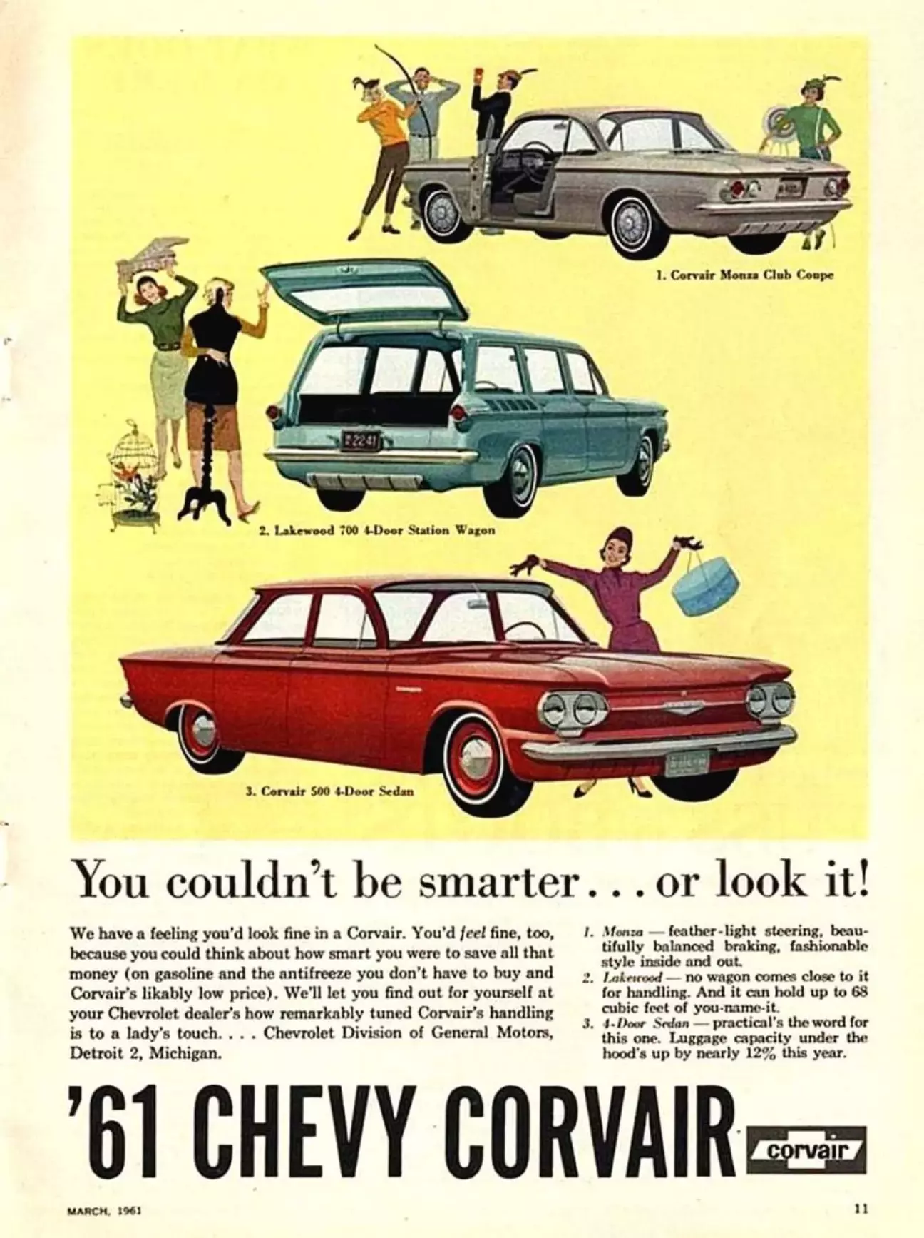 2 жовтня 1959 року корпорація General Motors першою з «Великої трійки» представила свою компактну модель — Chevrolet Corvair. Компактною вона була лише порівняно зі звичайними американськими авто, які перевищували її за габаритами приблизно на 20%. За європейськими мірками Corvair радше належала б до середнього, а то й вищого класу.