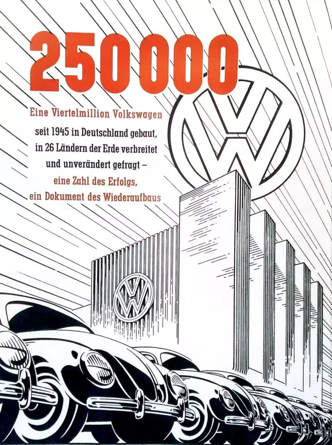 5 жовтня 1951 року з конвеєра заводу Volkswagen у Вольфсбурзі зійшов 250-тисячний автомобіль, виготовлений після закінчення війни.