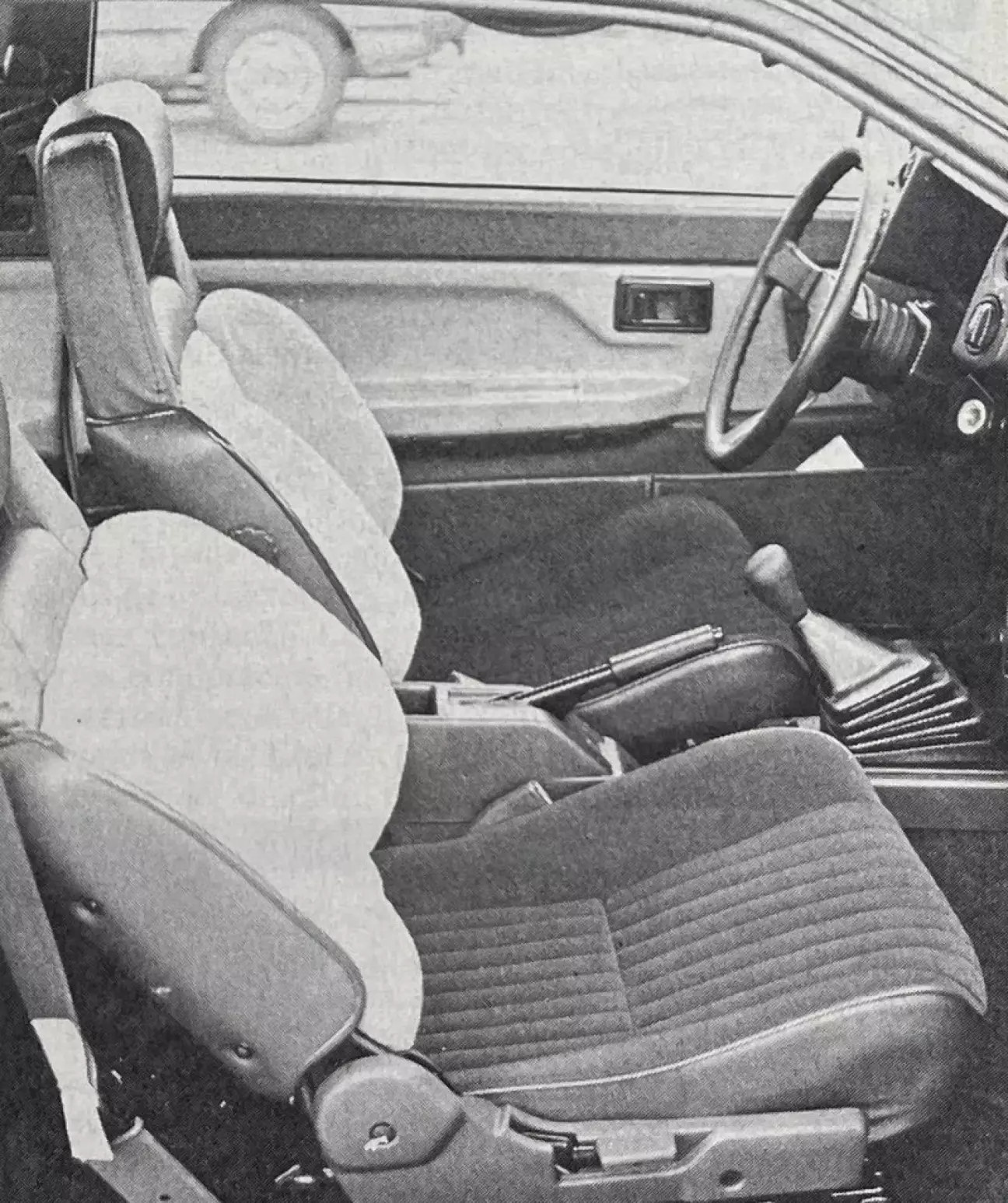 Разговор о комфорте в этой машине требует очевидного фильтра-корректора. Было бы совершенно неуместно ожидать от Corolla GT мягкости «буржуазных» купе. Она создана прежде всего для эффективности... Corolla GT неплохо удалась. Она, несомненно, использует жесткие подвески, не скрывая никаких неровностей дороги. Она предлагает передние сиденья глубокой формы, с сильно изогнутыми спинками для поддержки спины водителя и его пассажира. Кроме того, водительское сиденье имеет регулируемую по высоте подушку, с небольшой автоматической коррекцией наклона в процессе движения. Очень хорошо!