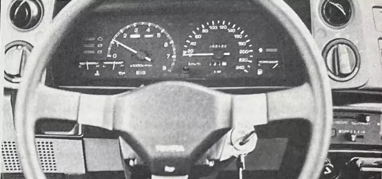 Недостает совсем немногого для счастья водителя, каким бы оно ни было! Приборная панель полная и легко читаемая, с огромным тахометром, таким же большим спидометром, с манометром давления масла, термометром охлаждающей жидкости и указателем уровня топлива. Контрольные лампы в целом хорошо расположены.