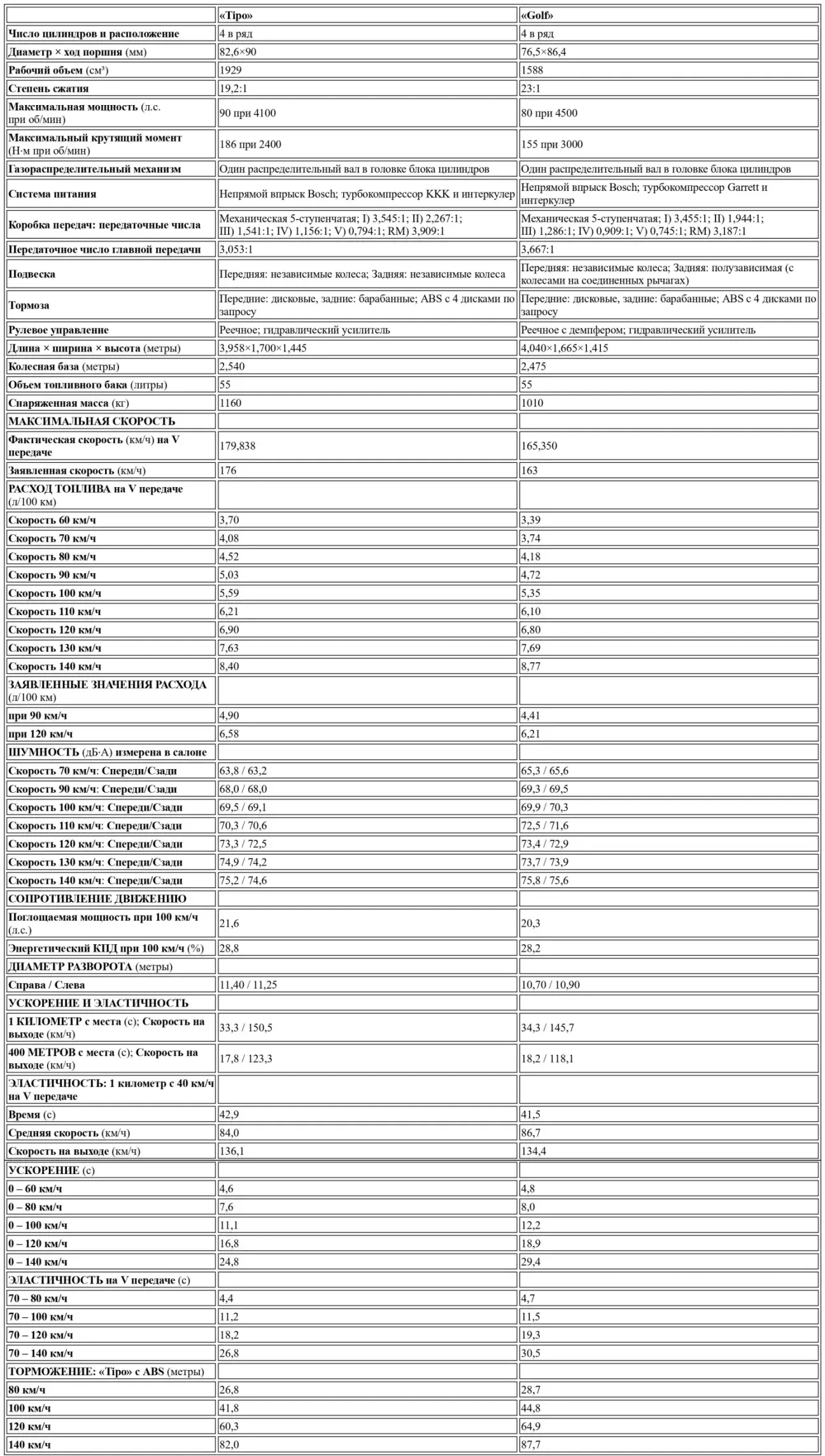 «Tipo»: Значительно быстрее, чем «Golf», благодаря двигателю с большим рабочим объемом и мощностью. Возможны отличные средние скорости на автомагистралях, не перенапрягая двигатель.