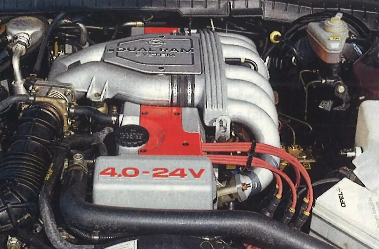 6-цилиндровый 24-клапанный двигатель, рабочий объем которого придворный тюнер Opel Irmscher довел с 3 до 4 литров, выступает с мощностью 272 л.с. («медвежьей», то есть очень большой), и швыряет 5-местный «экспресс для трудящихся» вперед с таким неистовством, что перевозка штучных грузов, особенно банок с краской, сама собой запрещается. Она разгоняется до 100 км/ч за 6,4 секунды. До 180 км/ч проходит всего 19,5 секунды.