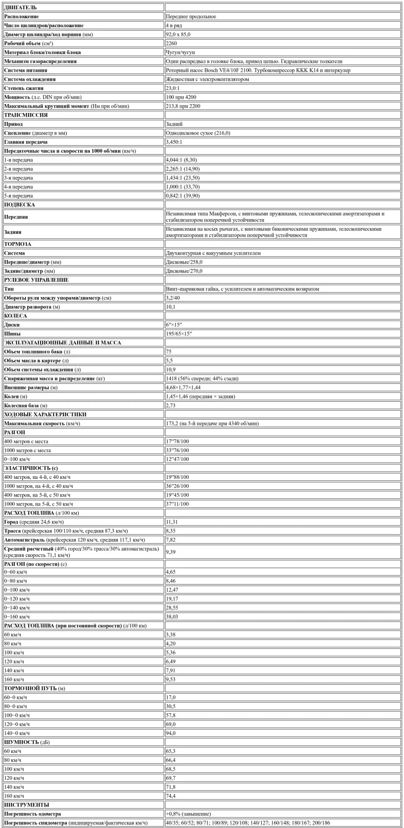 Возвращаясь к динамическим качествам автомобиля, тормозная система опирается на четыре сплошных диска, приводимых в действие независимыми контурами для каждой оси. Устойчивость к перегреву хорошая, а эффективность торможения может быть проверена в соответствующей таблице, где можно оценить высокую эффективность системы. Тестовый образец был оснащен системой антиблокировки тормозов (АБС), которая является опциональной, с которой у нас была возможность провести тест во время дождя, на довольно залитой водой дороге и в том же месте, где мы проводили замеры на сухой дороге. Для сравнения скажем, что расстояние, необходимое для остановки со 140 км/ч, составило 126 метров, что на 30 метров больше, чем на сухой дороге, в то время как с 80 км/ч мы остановились на расстоянии 38,5 метров, всего на 8 метров больше, чем в идеальных условиях. И все это с безупречной курсовой устойчивостью.