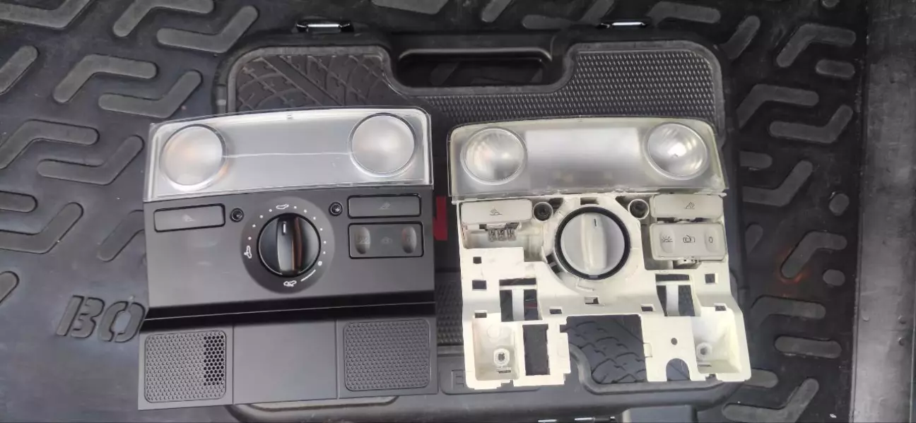 Доработка салона, купольный светильник был не совсем рабочий, не работал свет на открывание дверей и иногда сам открывался люк, мало того, предыдущий владелец поламал все усики на крышках светильника когда разбирал его😬😬😬 они вечно отпадали на кочках, приклеил их на двусторонний скотч на время и вот долгожданная посылка пришла)