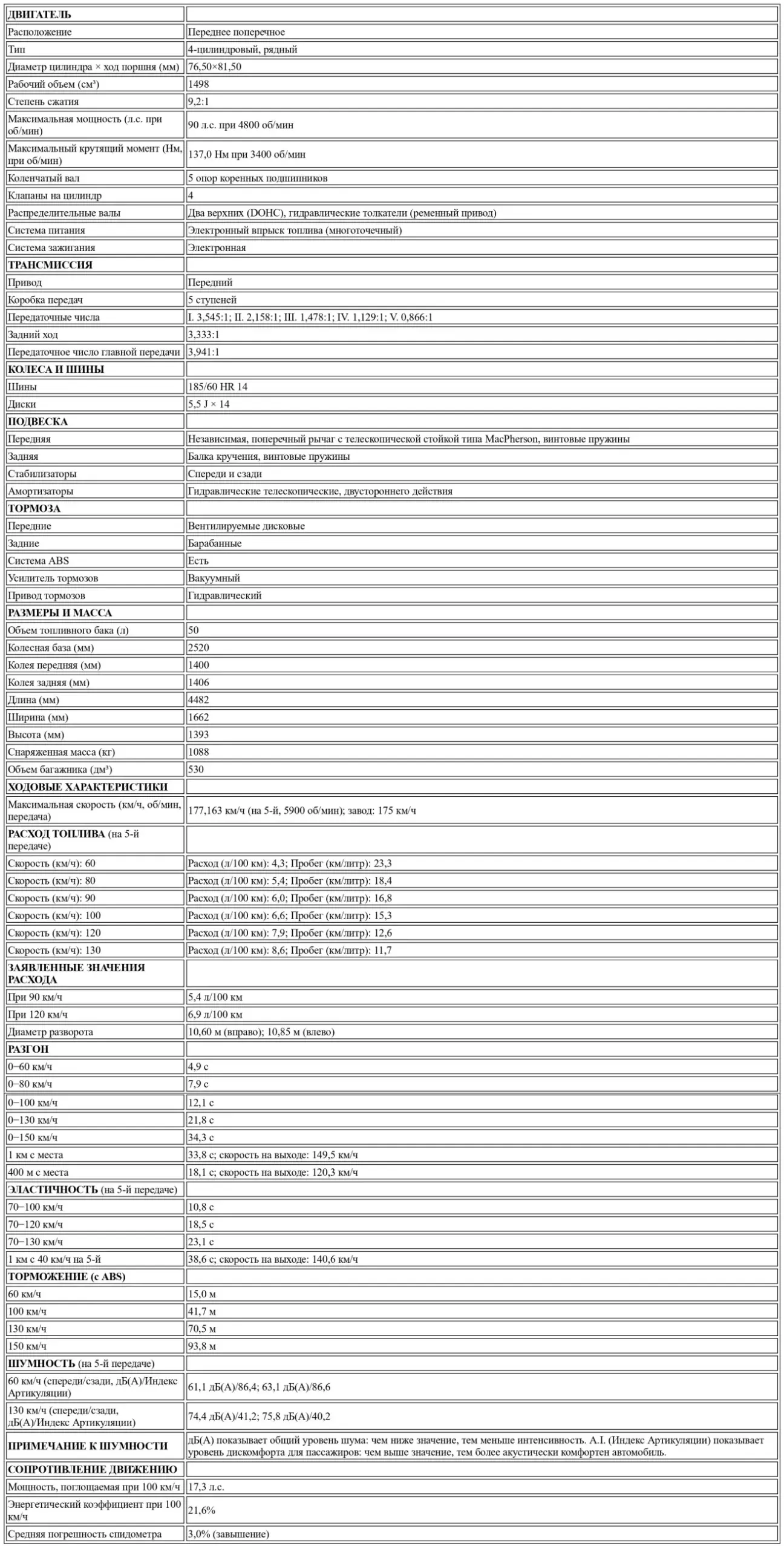 Комфорту пассажиров способствует и подвеска, которая, однако, имеет тенденцию резко становиться жесткой на неровностях. На гладком покрытии реакции, напротив, довольно мягкие и склонны вызывать колебания кузова. Тем не менее, дискомфорт достаточно ограничен. В целом также хорошо переносится появление различных шумов, которые усиливаются с ростом скорости. Однако, главной причиной увеличения акустического дискомфорта является двигатель, вынужденный работать на высоких оборотах из-за довольно «коротких» передаточных чисел коробки передач: на 1000 об/мин на пятой передаче можно проехать всего 29 км/ч, в то время как максимальная скорость (177 км/ч) достигается приблизительно на 6000 об/мин. Техническое решение, которое, с другой стороны, «оживляет» поведение четырехцилиндрового двигателя 1500 с электронным впрыском топлива, заставляя его выдавать максимум на высоких оборотах за счет многоклапанной системы питания. Хороший темперамент двигателя подтверждается показателями времени разгона и эластичности, которые соответствуют тем, которыми могут похвастаться одноклассники с мощностью более 100 л.с.