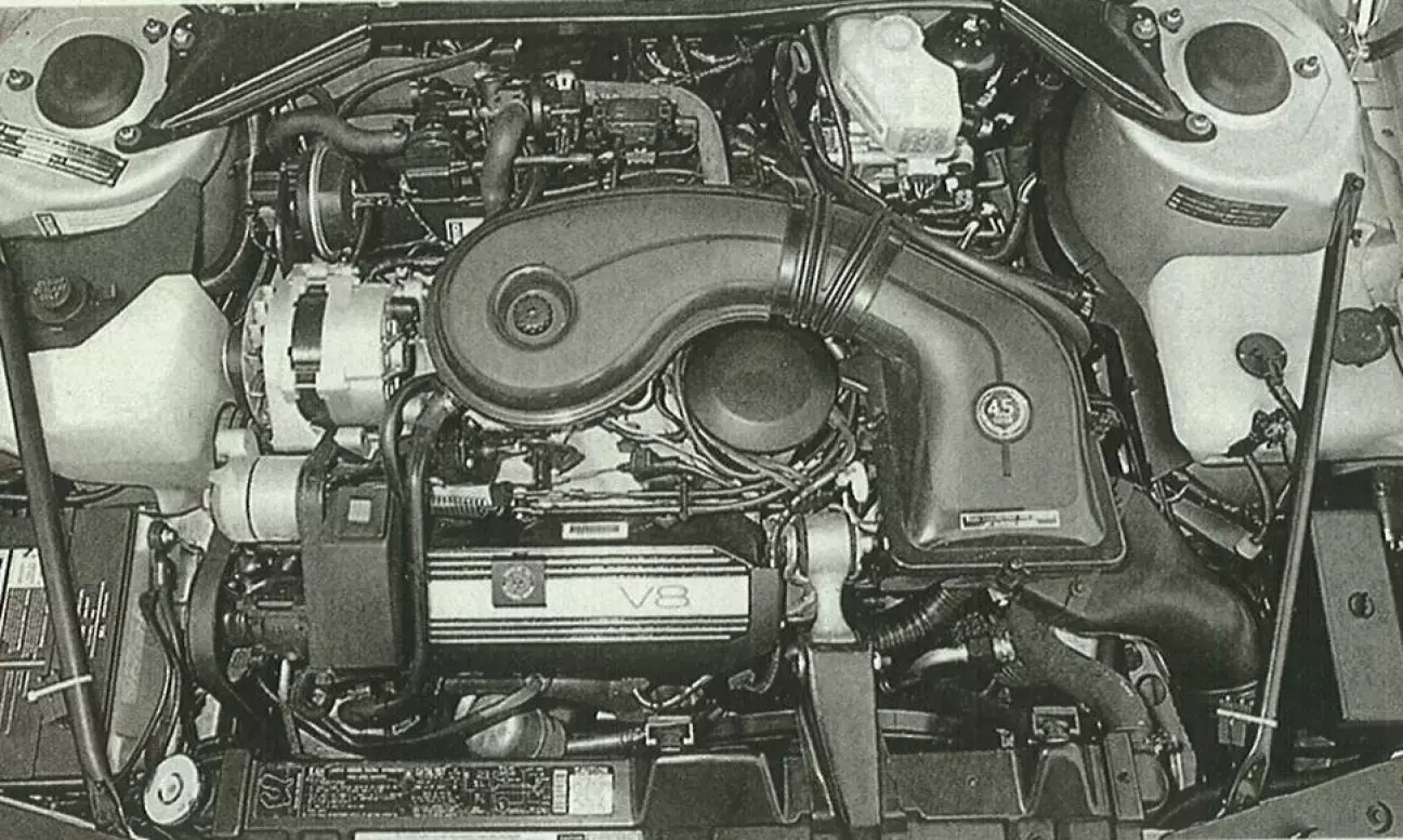 Это относится не только к габаритам кузова, но и к размеру двигателя. Времена, когда нормой был рабочий объем в 7 литров, окончательно прошли. Вместо «большого блока» (big block) теперь царит «маленький блок» (small block), хотя Cadillac все еще может позволить себе роскошь устанавливать V8 объемом 4,5 литра. Мощность V8, оснащенного алюминиевым блоком и чугунными головками блока цилиндров, составляет скромные 158 л.с. при столь же скромных 4000 об/мин. Более впечатляющим выглядит максимальный крутящий момент в 325 Нм, который передается на коленчатый вал уже при 2600 об/мин.