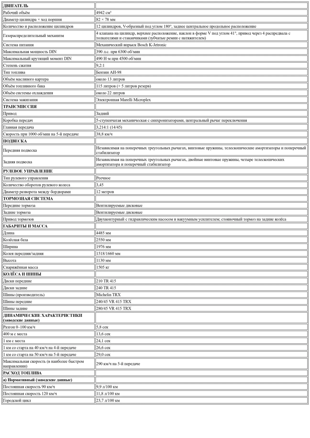 Заявленная максимальная скорость 290 км/ч также кажется мне вполне достоверной, как с учетом скорости, с которой стрелка спидометра поднимается до 250, так и исходя из электрически замеренной скорости 283,5 км/ч для упомянутой выше BB 512, при том, что та имеет на 50 л. с. меньше, и ее кузов датируется эпохой, когда аэродинамическая труба Pininfarina еще не функционировала. Немаловажной заслугой этой аэродинамической трубы, несомненно, является то, что она позволила добиться для Testarossa практически нулевой подъемной силы, как на передней, так и на задней оси, исключительно за счет базового дизайна кузова. На практике это выражается в безупречной курсовой устойчивости и неизменной точности рулевого управления на очень высоких скоростях, на которые Testarossa способна.