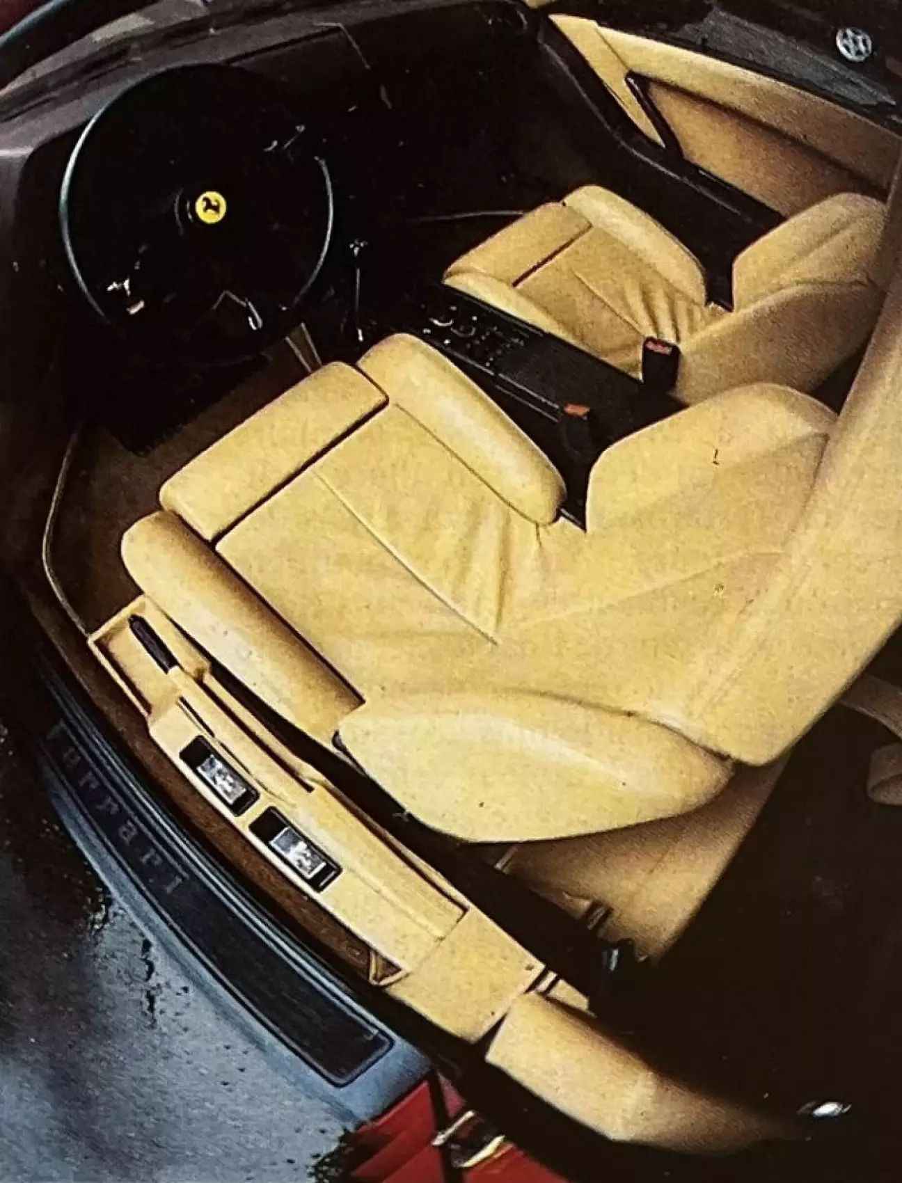 Тем не менее, дорожный автомобиль нужно судить на дороге, и, узнав на Fiorano все, что я хотел знать о поведении и мощности Testarossa, пришло время выехать на трассу. Таким образом, я влился в вереницу автомобилей, наводнивших узкую национальную дорогу, соединяющую Маранелло с Моденой в конце дня, чтобы выехать на автостраду. Несмотря на свой футуристический вид, Testarossa не пренебрегает практичностью. Так, желоб шириной около 25 сантиметров простирается на всю ширину салона, позади сидений, и может вместить много предметов, тем самым устраняя самый большой недостаток автомобилей со средним расположением двигателя, в которых, когда оба сиденья заняты, не остается места, чтобы положить даже маленький портфель. Более крупный багаж размещается под передним капотом, который теперь свободен от радиатора. Рулевая колонка регулируется по высоте, сиденья регулируются электроприводом по высоте, длине и наклону, а кондиционер входит в стандартную комплектацию. Окна, естественно, имеют электрический привод и полностью опускаются в двери. Водитель не в полной мере осознает внушительную ширину своего автомобиля, продиктованную шириной горизонтального 12-цилиндрового двигателя, шириной шин и боковыми радиаторами, расположенными прямо перед задними колесами. Обзор назад и на три четверти назад удивительно хорош для автомобиля со средним расположением двигателя, так что ни маневры парковки, ни въезды на дороги под острым углом не создают больших проблем.