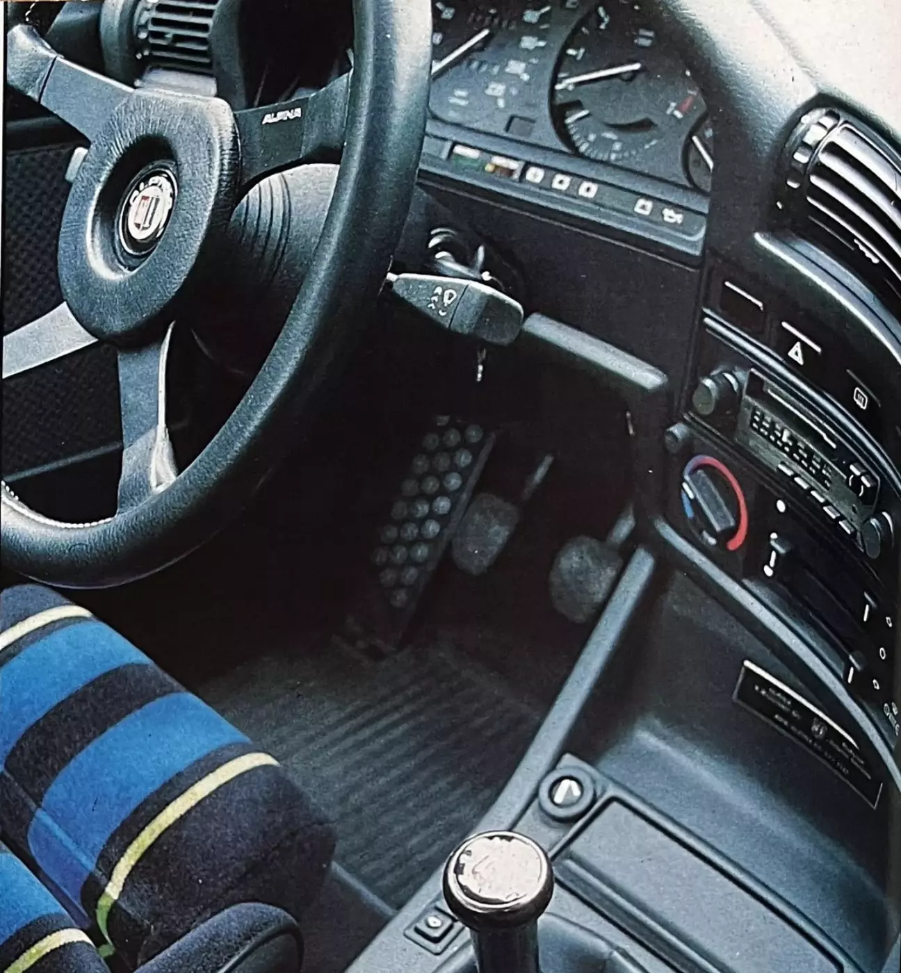 Открывая дверь, чтобы сесть в салон, вы невольно останавливаетесь, чтобы полюбоваться велюровой обивкой в цветах Альпина на превосходных ковшеобразных сиденьях Recaro и на заднем диване. Это оснащение входит в каталог опций Альпина. Спортивное рулевое колесо и набалдашник рычага переключения передач несут эмблему производителя, и, как последняя деталь, чтобы убедиться, что вы сели в настоящий спорткар, слева от педали сцепления находится широкая и очень удобная подставка для отдыха ноги, которая поможет вам сохранять идеальную посадку за рулем при любых обстоятельствах. В остальном мы видим функциональный салон 323-й.
