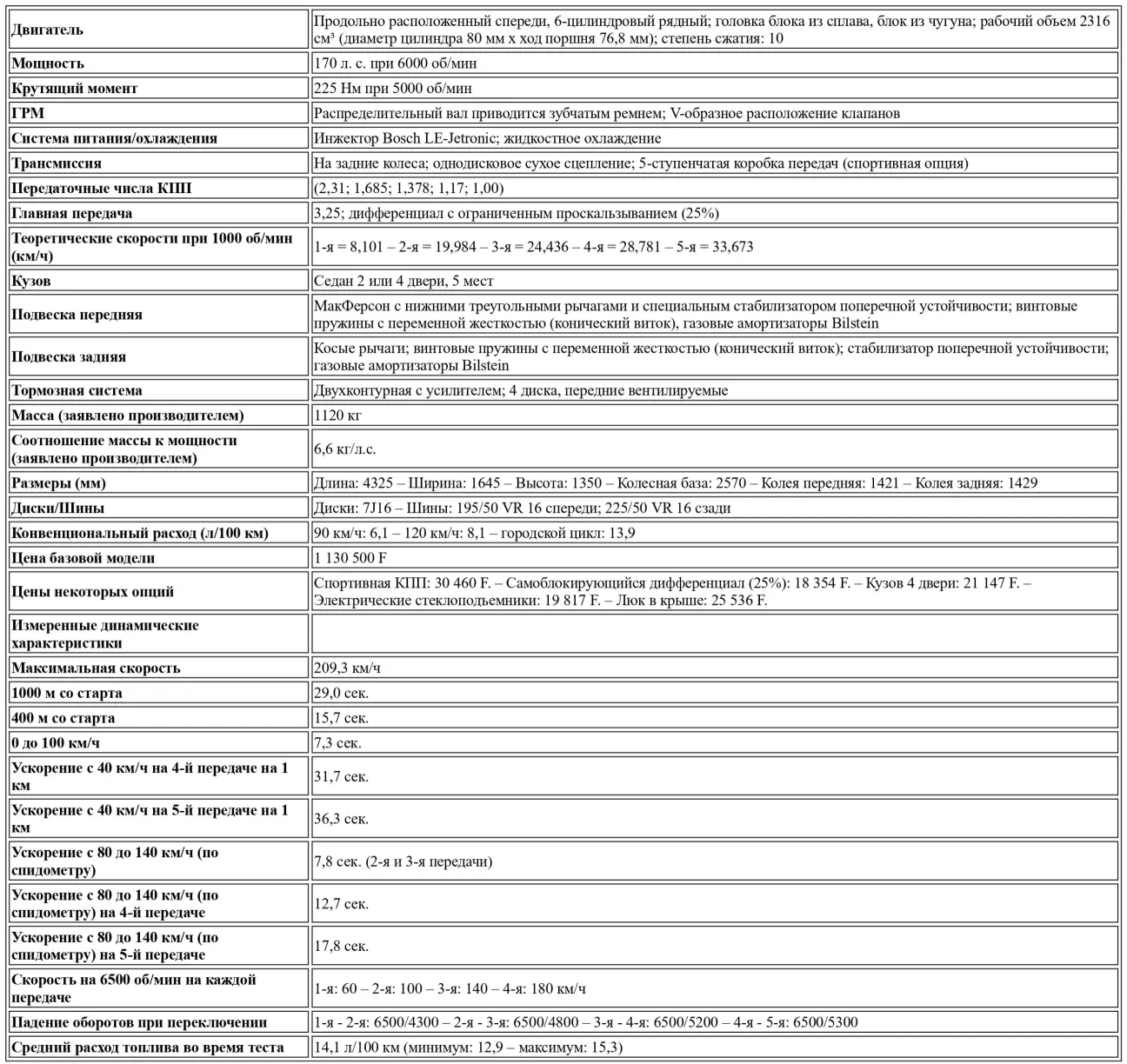 Заявленная скорость 213 км/ч означает, что С1 выполняет свои обязательства по динамическим характеристикам. Однако нам необходимо сделать отступление, чтобы еще раз осудить политику опций, которую практикует большинство немецких производителей. Базовая модель действительно поставляется с «длинной» коробкой передач и без самоблокирующегося дифференциала. Тот факт, что это оснащение, необходимое для автомобиля со столь ярко выраженным спортивным характером, поставляется только в качестве опции, столь же непонятен, сколь и недопустим.