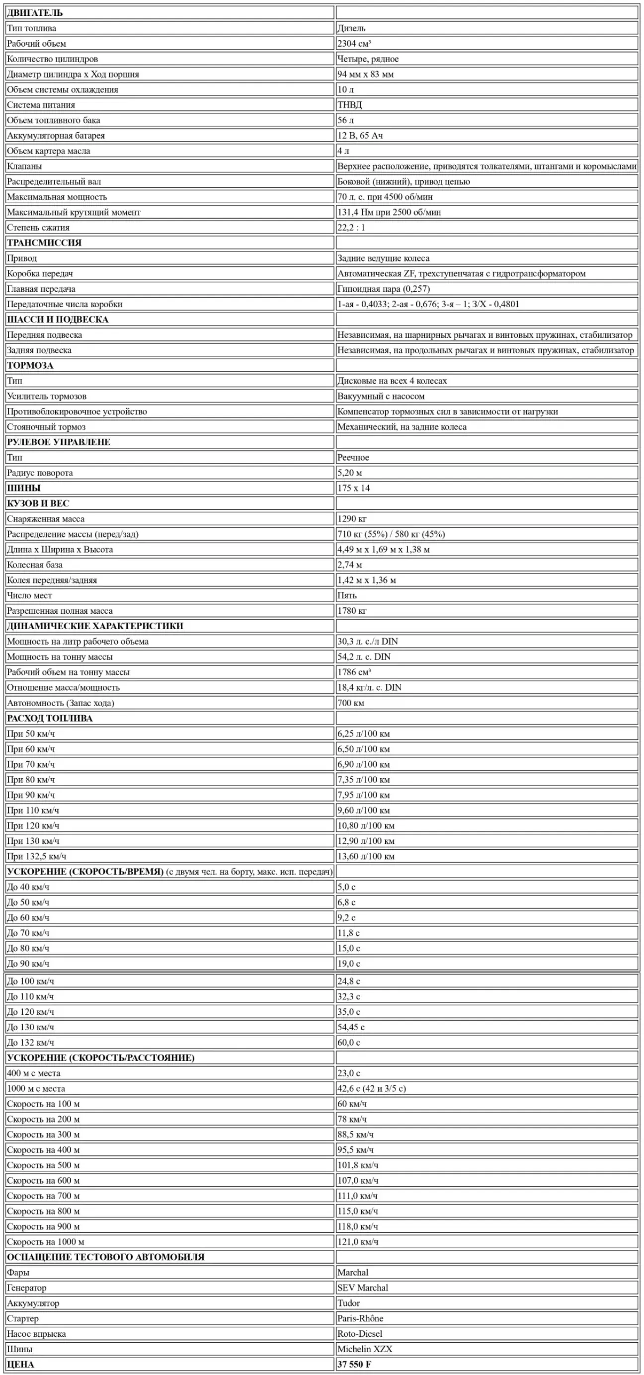 Несмотря на это «априори» отрицательное развитие, я все же думаю, что 504 D приятнее водить, чем прежде. Как и следовало ожидать, упомянутые выше «хронометражи» выполняются с полной нагрузкой, то есть с «утопленной в пол» педалью акселератора. Если же «довольствоваться» более «сбалансированным» нажатием, то новый двигатель, напротив, кажется явно более «насыщенным»... Несмотря на несколько неприятный недостаток прогрессивности со стороны педали акселератора, автомобиль «бодро» реагирует, конечно, при туристическом стиле вождения и «удержание» на подъеме хорошее, независимо от перевозимой нагрузки.