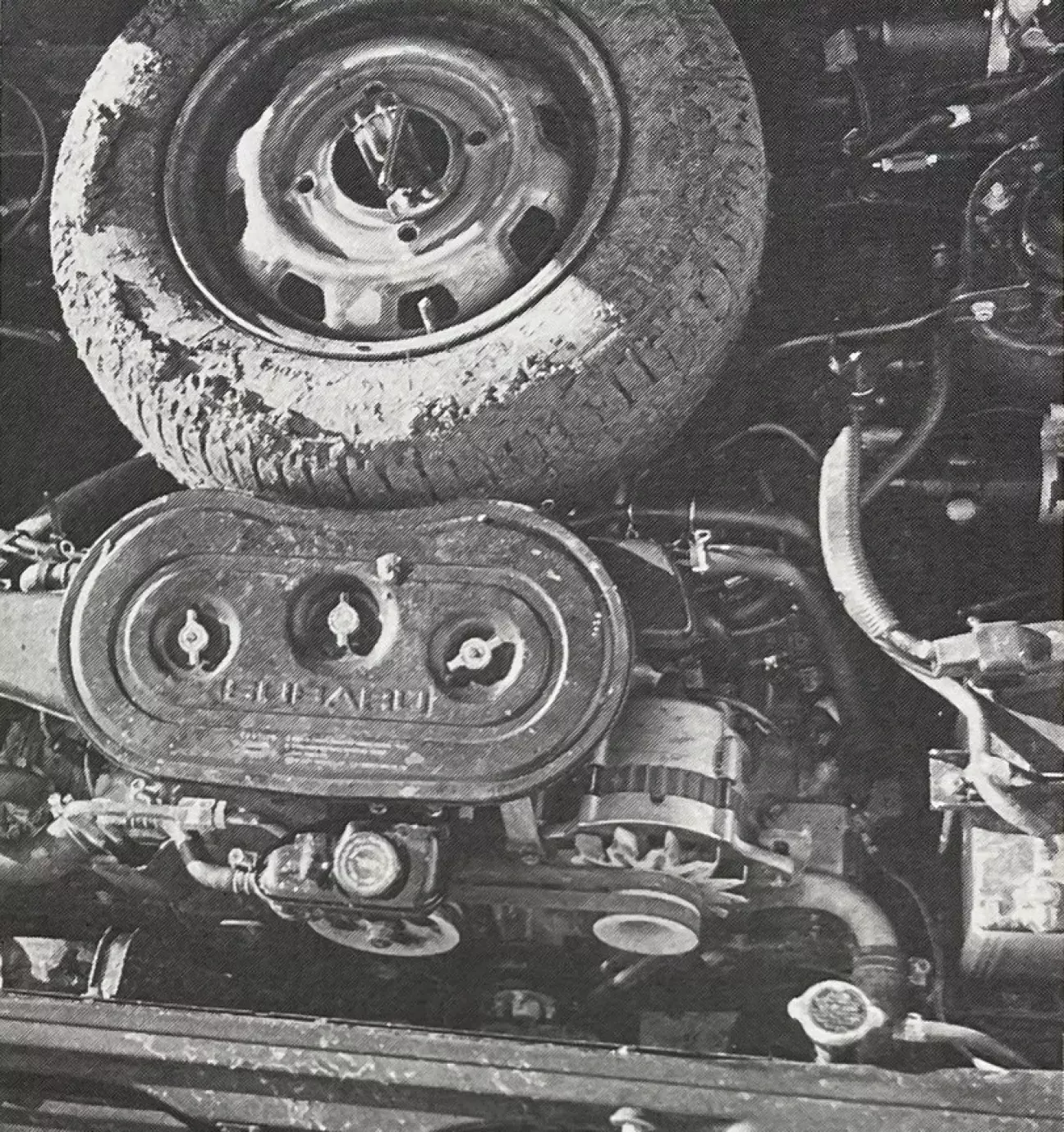 Коленчатый вал вращается на 3 «опорах», каждая шатунная шейка «обслуживает» 2 шатуна. Агрегат использует два верхних распределительных вала, приводимых в движение двумя зубчатыми ремнями. Клапаны приводятся «коромыслами», что позволяет «ассистировать» им гидравлическими компенсаторами. Подобная конструкция снижает рабочий шум, но, главное, устраняет разрегулировки, поскольку срабатывает автоматическая компенсация. Питание агрегата доверено перевернутому двухкамерному карбюратору с ручным «стартером» (воздушной заслонкой, необходимой при холодном пуске). Зажигание электронное, бесконтактное. Что касается охлаждения, оно осуществляется с помощью жидкостного контура с расширительным бачком, дополненного электрическим подключаемым вентилятором. Двигатель занимает мало места, и его конфигурация, в частности, ограничивает его высоту. Он полностью доступен для всех плановых операций. Компоновка переднего отсека позволила разместить запасное колесо горизонтально сразу за воздушным фильтром, над коробкой передач.