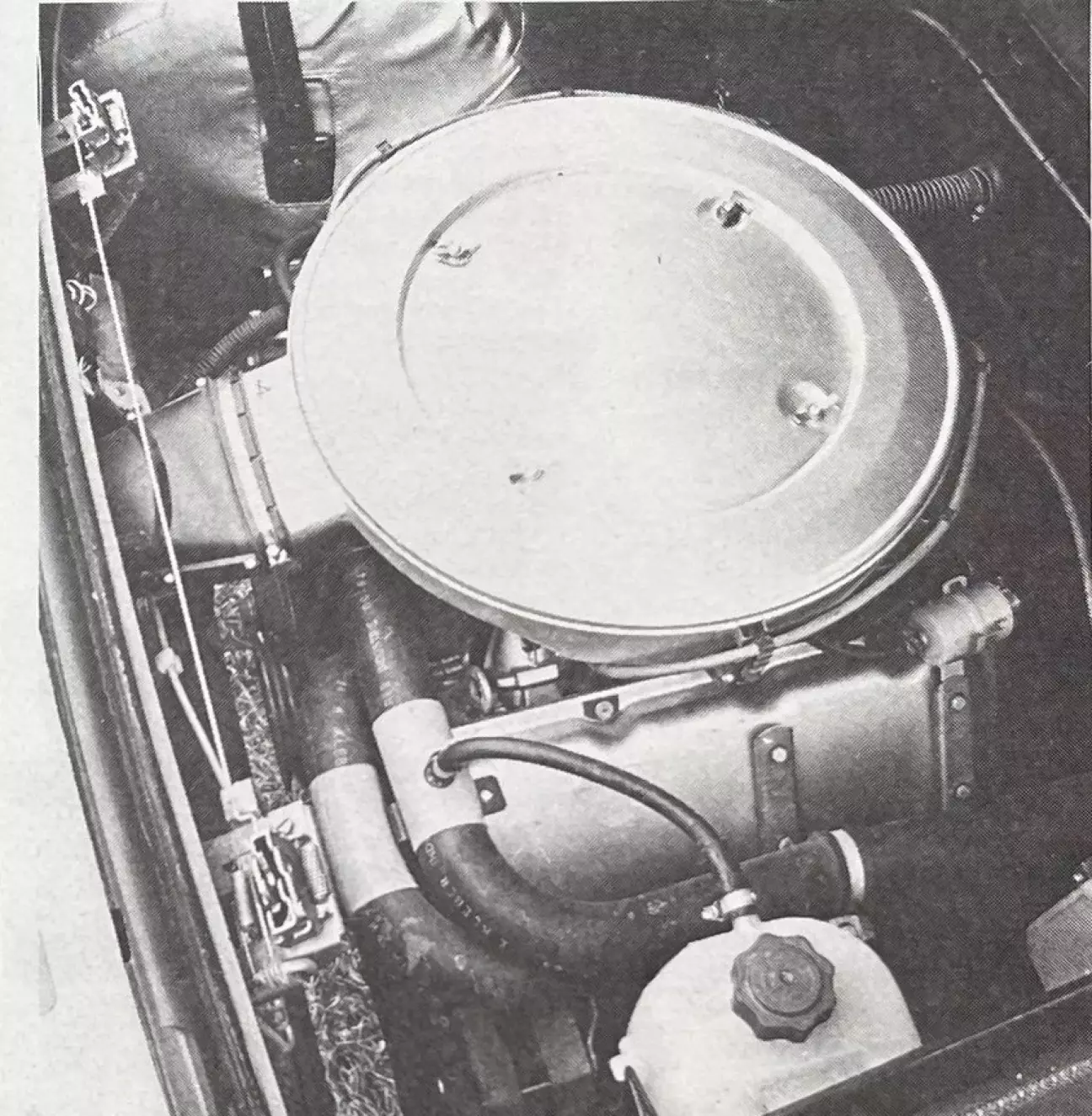 Техники создали систему подачи свежего воздуха, забираемого на уровне заднего спойлера в зоне повышенного давления для создания эффекта естественного наддува. По информации завода, эта техника дает прибавку 8 км/ч к максимальной скорости, что эквивалентно дюжине дополнительных лошадиных сил. Двигатель расположен в отведенном для него отсеке, к которому можно получить доступ, подняв заднее стекло и изоляционную перегородку, по типу полки для шляп. Можно было бы представить, что там можно разместить плоский предмет, но температура, которая там царит, может вызвать некоторые проблемы. Этот отсек отделен от салона вертикальным стеклом, которое улучшает звуковую и тепловую изоляцию. Чтобы работать с двигателем, однако, предпочтительно дождаться охлаждения выпускных коллекторов.