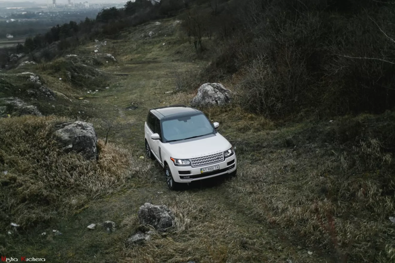 Пробуємо сили, заганяючи цього красунчика на 22-дюймових колесах у Вовчинецькі гори. Не змигнувши оком, наш «Range Rover» легко йде болотом вгору. Повний набір оф- роад блокувань та кліресн 22 см – і зі стрімкими спусками в автомобіля також не виникає жодних проблем. Попри в'язкий дорожній бруд, «Range Rover» продовжує їхати так, наче він на звичайній дорозі. Здається, цей позашляховик ніщо не здатне зупинити.