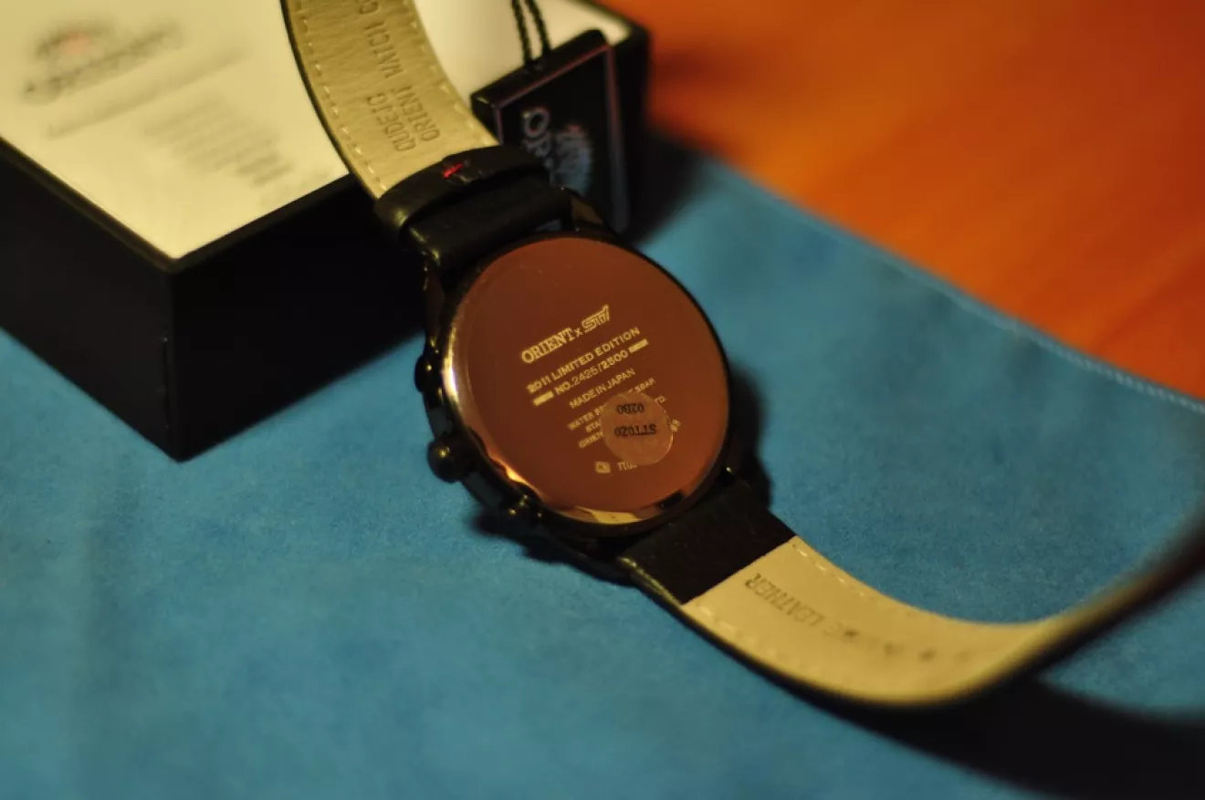 А второй повод хвастаться, это часики STI от ORIENT. Лимитированная серия, всего 2500 штук, мне достались 2425-е. Конечно они сразу стали любимыми. Изготовлены они в интересном авто дизайне, под цифрой 12 есть колесико которое крутиться, когда включаешь секундомер. Ношу их с радостью и это по истине большое удовольствие каждый раз когда смотришь который час, видеть эти любимые буквы.