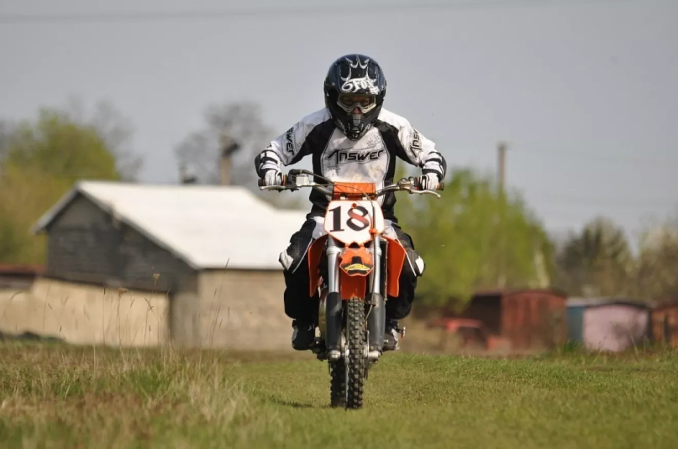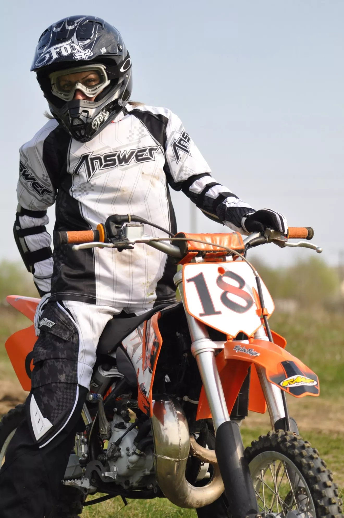 Это подростковый мотокроссовый KTM, дури по голову, и размер как раз для меня, для моих габаритов и веса.