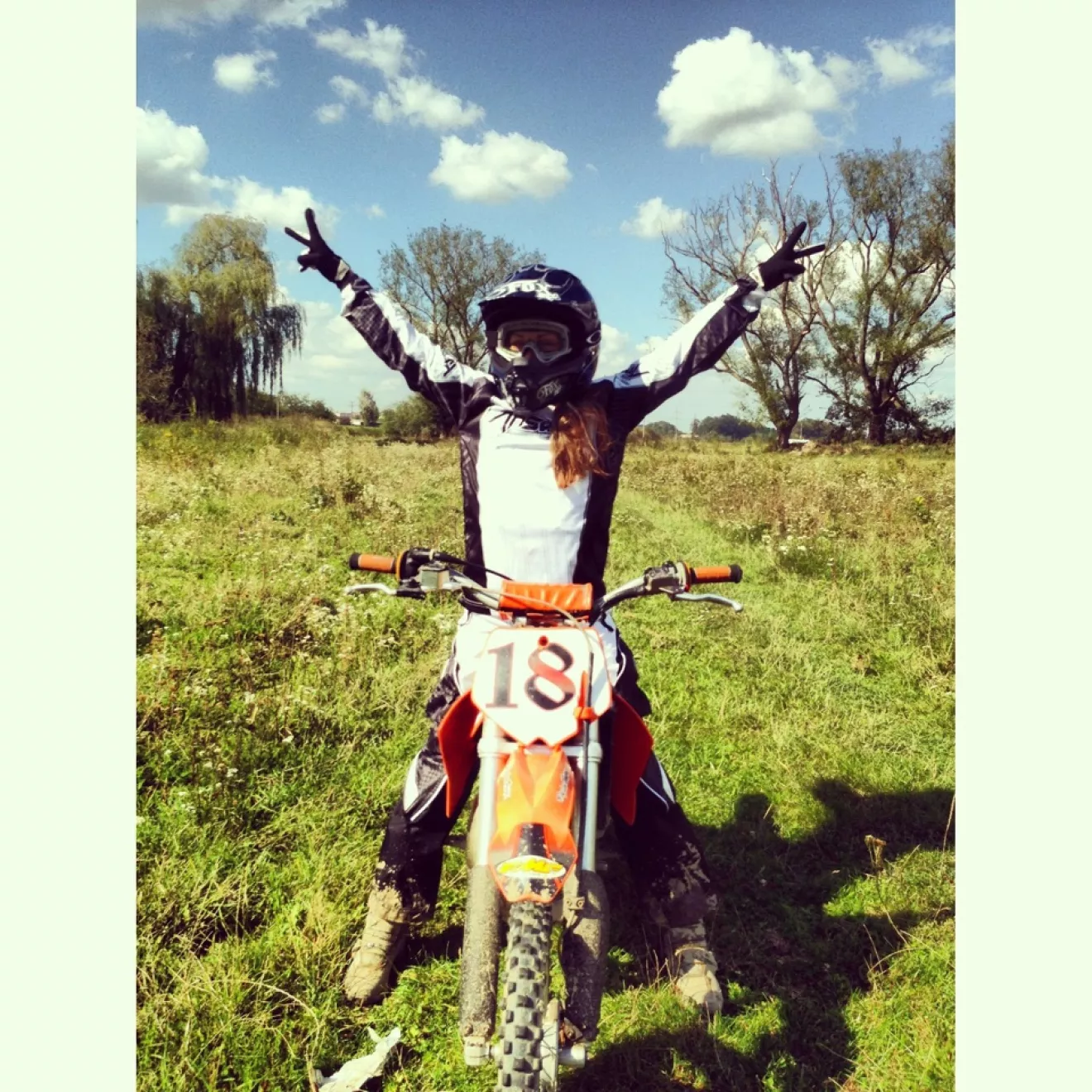 Когда я его приручила, ездить стало на нем не так страшно, как сначала, но на заднее колесо встает при любом резком открытии газа. Вчера поехали на грунтовую дорогу и поле, а не в горы или на мотокроссовую трассу, но адреналина получила не меньше.