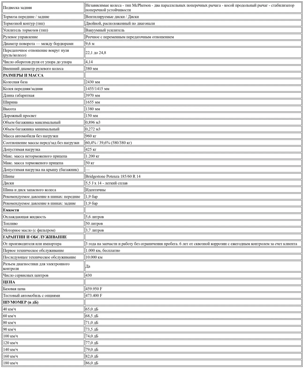 Мы уже отмечали выше, что подвеска относительно жесткая, но не некомфортная. Конечно, проезд поперечных швов иногда вызывает довольно резкие реакции задней оси, но не будем забывать, что мы имеем дело с маленькой GT. Спереди место, отведенное для пассажиров, удовлетворяет самых требовательных и особенно водителя, благодаря особо удобному сиденью, хорошо спрофилированному, отлично поддерживающему тело и имеющему не менее 7 различных регулировок (высота и глубина подголовника, наклон спинки, регулируемая боковая поддержка, поясничная поддержка, вертикальное и продольное положение сиденья).