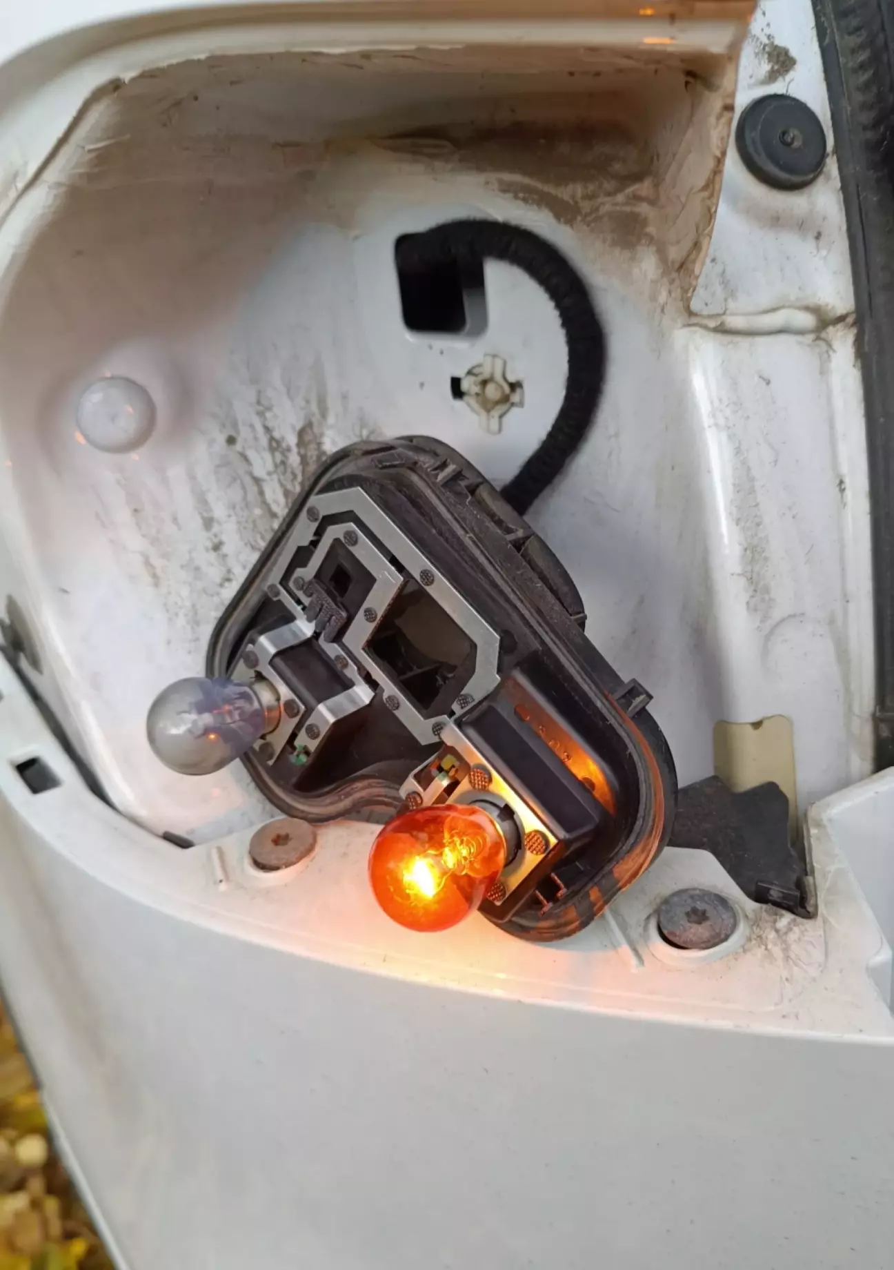 Розбираємо задні ліхтарі, встановлюємо оранжеві лампочки.
