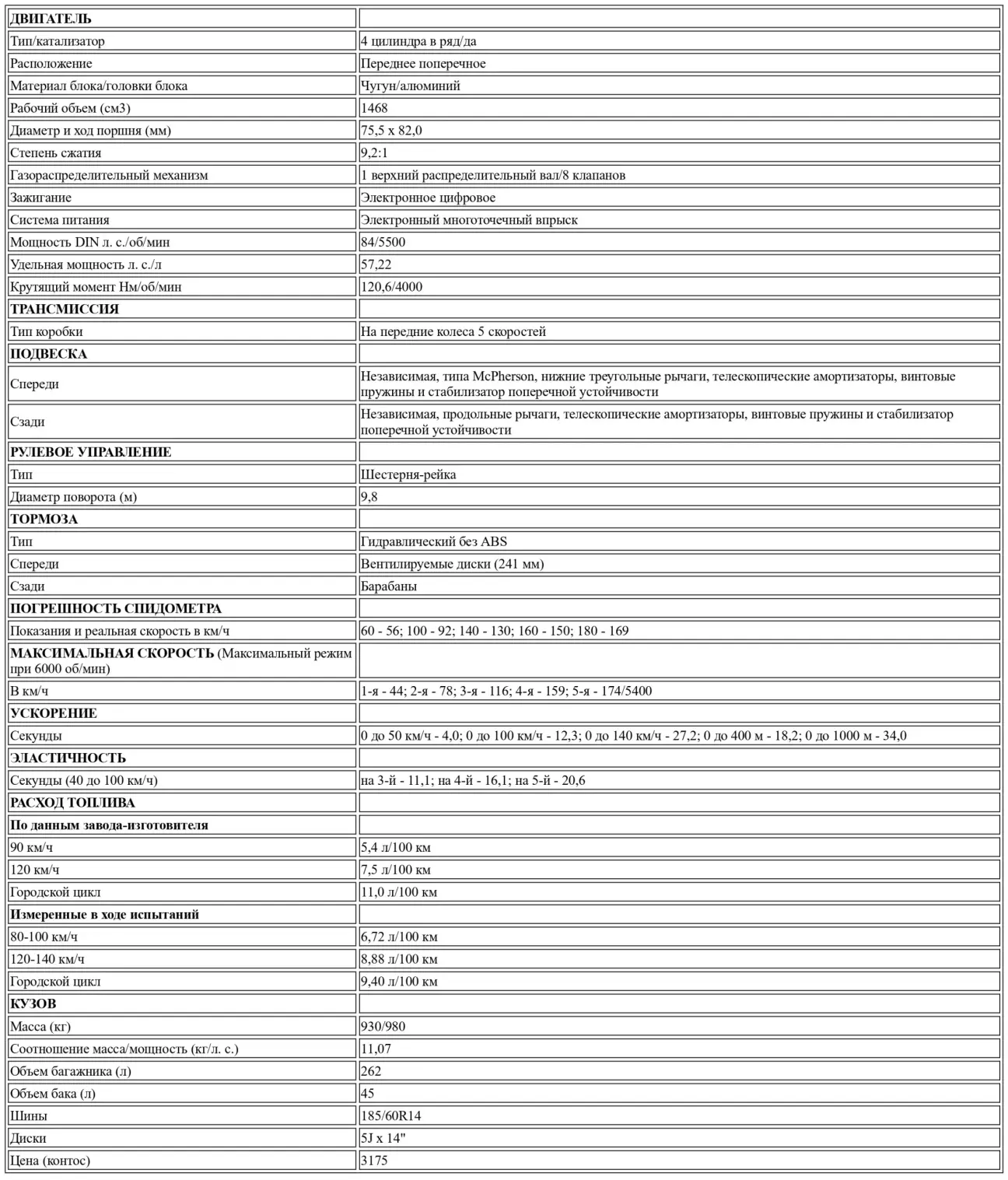 Оснащенный катализатором и использующий классические решения с двумя клапанами на цилиндр, управляемыми одним верхним распредвалом, четырехцилиндровый двигатель рабочим объемом 1468 см3, мощностью 84 л. с. при 5500 об/мин и максимальным крутящим моментом 120,6 Нм при 4000 об/мин, неизбежно должен будет соперничать со своими конкурентами объемом 1,4 литра, учитывая его рабочий объем, не совсем обычный в Европе. Впрочем, этот двигатель и соответствующая трансмиссия ничем не отличаются от тех, что устанавливаются на Pony 1.5 GLSi (тестировался в нашем № 127), демонстрируя в качестве основных достоинств свою эластичность и прогрессивность, и если бы не коробка передач с типично японской точностью и плавностью, но со слишком длинным эшелонированием двух ее последних передач — особенно четвертой, которую довольно трудно выкрутить — легкость использования автомобиля была бы существенно усилена.
