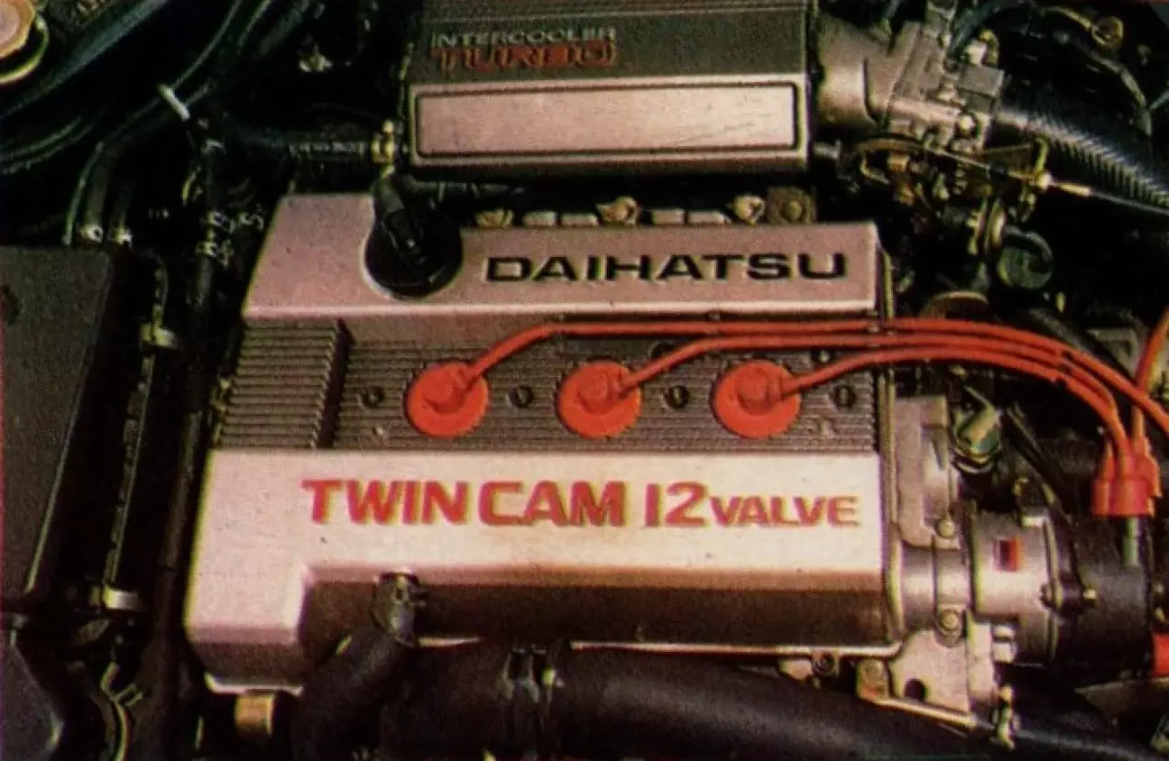 Так, для начала, маленький двигатель был оснащен 4-клапанной головкой блока цилиндров. Затем, и как будто этого было недостаточно, был установлен турбокомпрессор IHi небольших размеров, способный обеспечить давление наддува 0,75 бар. Результат не мог быть иным, и благодаря технологиям, к которым прибегнул производитель, малыш теперь выдает 101 л. с. при 6500 об/мин, хотя и достигает 7600 об/мин. Если вы все еще не удовлетворены, мы всегда можем сказать вам, что этот безобидный Charade имеет ту же удельную мощность, что и прославленный Sierra Cosworth, то есть 100 л. с. на литр!