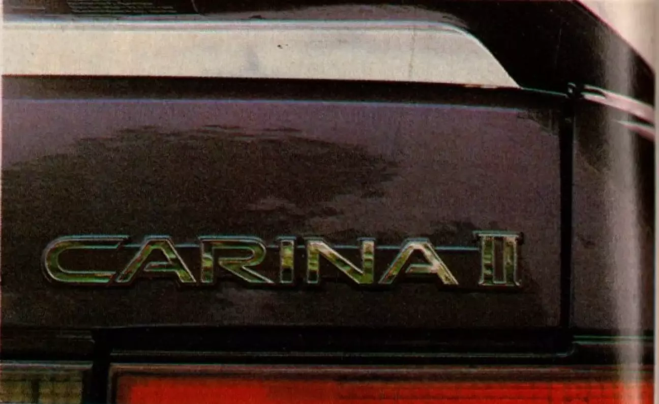 Переработанная летом 1988 года, Carina, тем не менее, представляет собой продукт, способный остаться совершенно незамеченным, без признаков желания конструктора привлечь к ней внимание прохожих. Ее формы, отличающиеся почти абсолютной плавностью, прерываемой лишь боковой защитной полосой и нарушаемой задними оптическими группами (фонарями) внушительных размеров, были бы лишены индивидуальности, если бы не передняя часть, которая, если на нее обратить внимание, умудряется передать немного агрессивности. Возможно, для уравновешивания задней части в этом аспекте Toyota оснастила Carina дефлектором на крышке багажника — аксессуаром, который при первом приближении может создать ошибочное впечатление, что перед нами спортивный автомобиль. Ошибочное, потому что Carina не является таковой по призванию, и потому что, в конце концов, дефлекторы сегодня являются обычным атавизмом для большого числа семейных автомобилей.