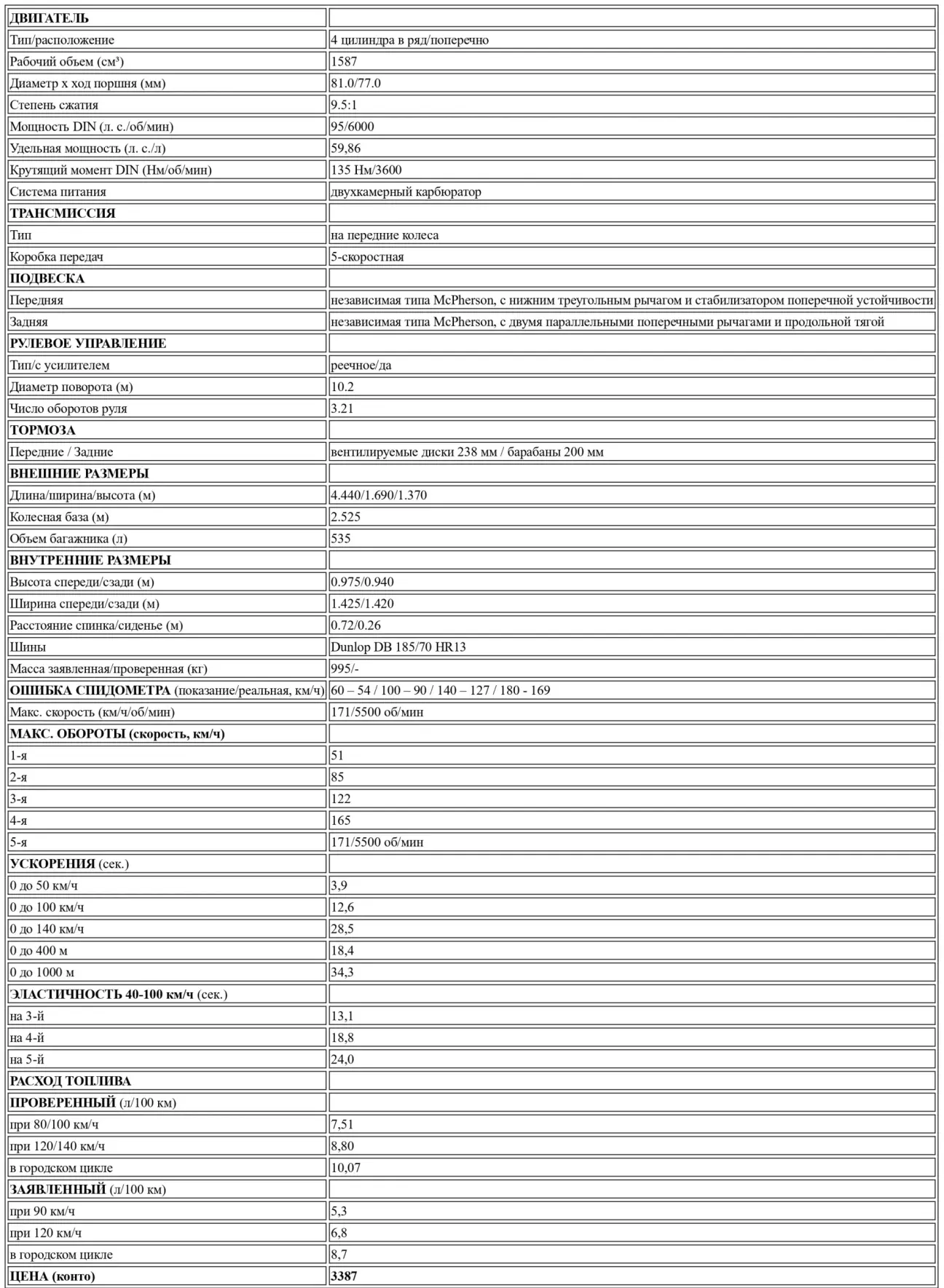 Остается добавить, что на средних оборотах двигателя Carina легко ускоряется, показывая себя на высоте своих стремлений как автомобиля для шоссе, и требует минимального использования коробки передач. Если можно считать, что расход топлива немного выше, чем ожидалось, этот факт связан с использованием двухкамерного карбюратора, в качестве альтернативы системе впрыска, которая, несомненно, оказалась бы более умеренной в потреблении.